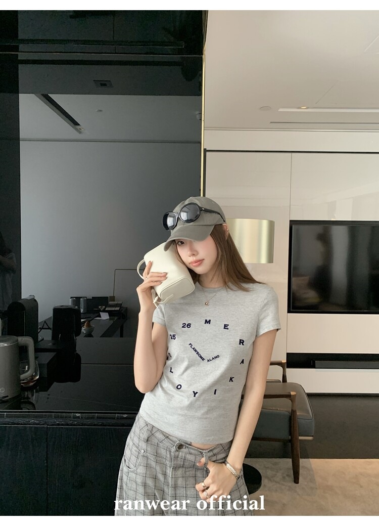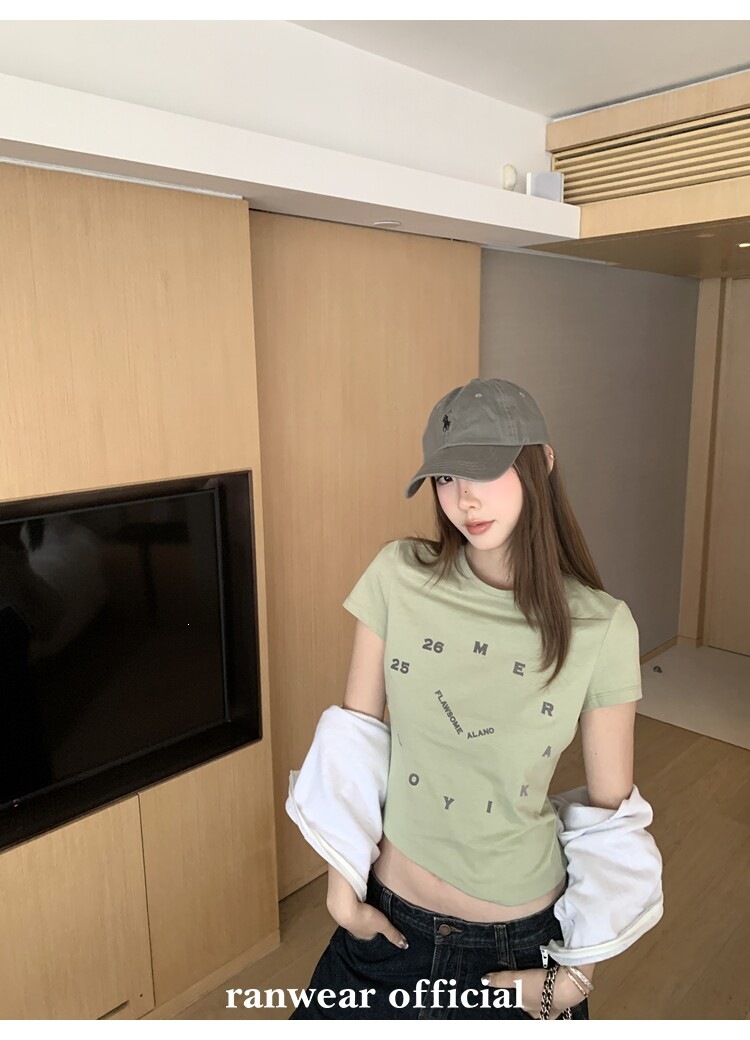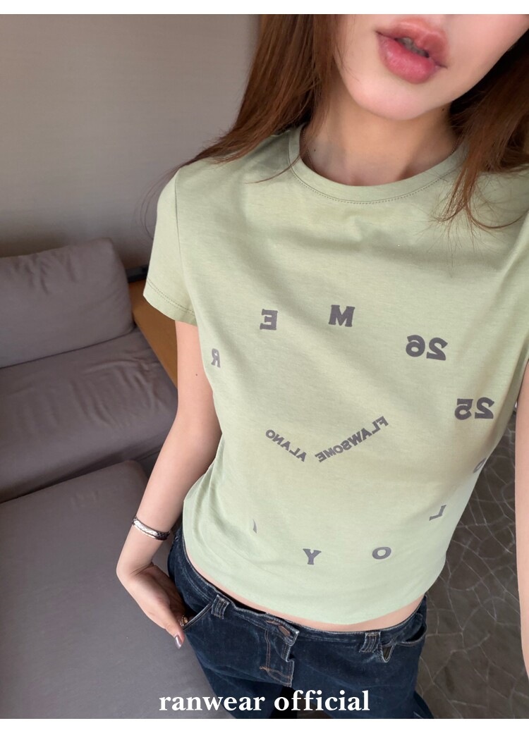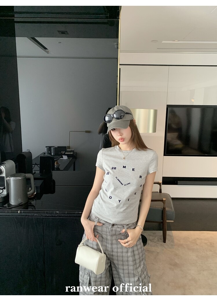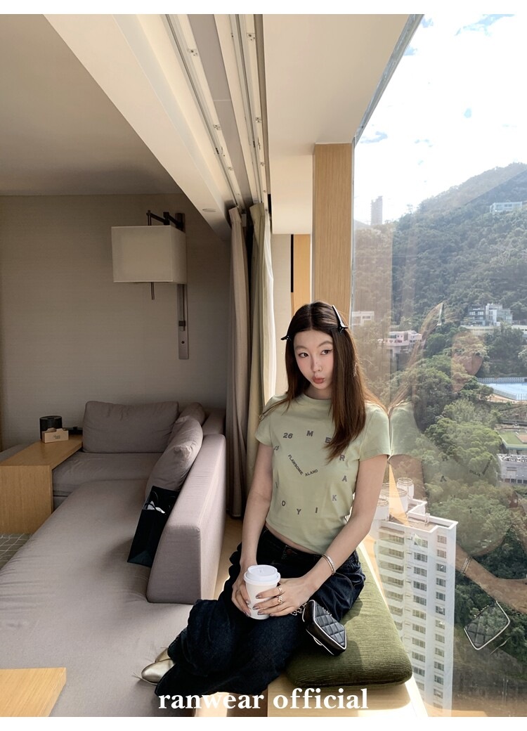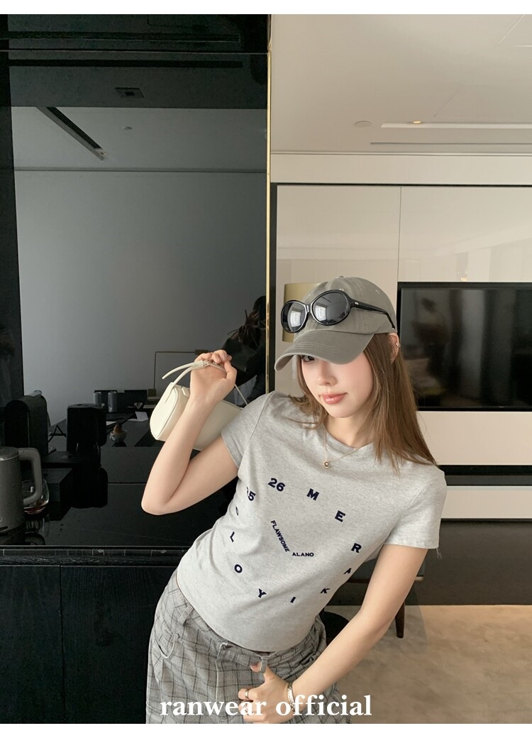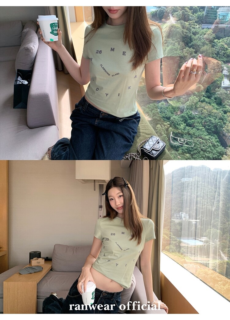 Ranwear'私服t'百搭圆领休闲字母印花修身显身材短短袖T恤