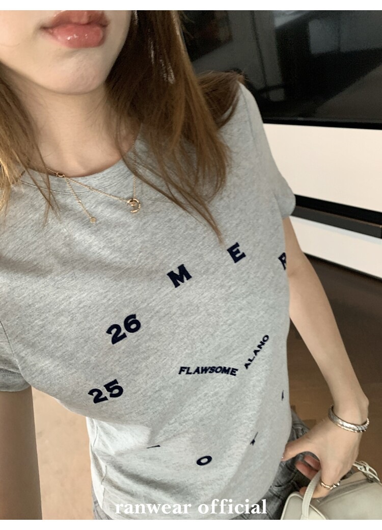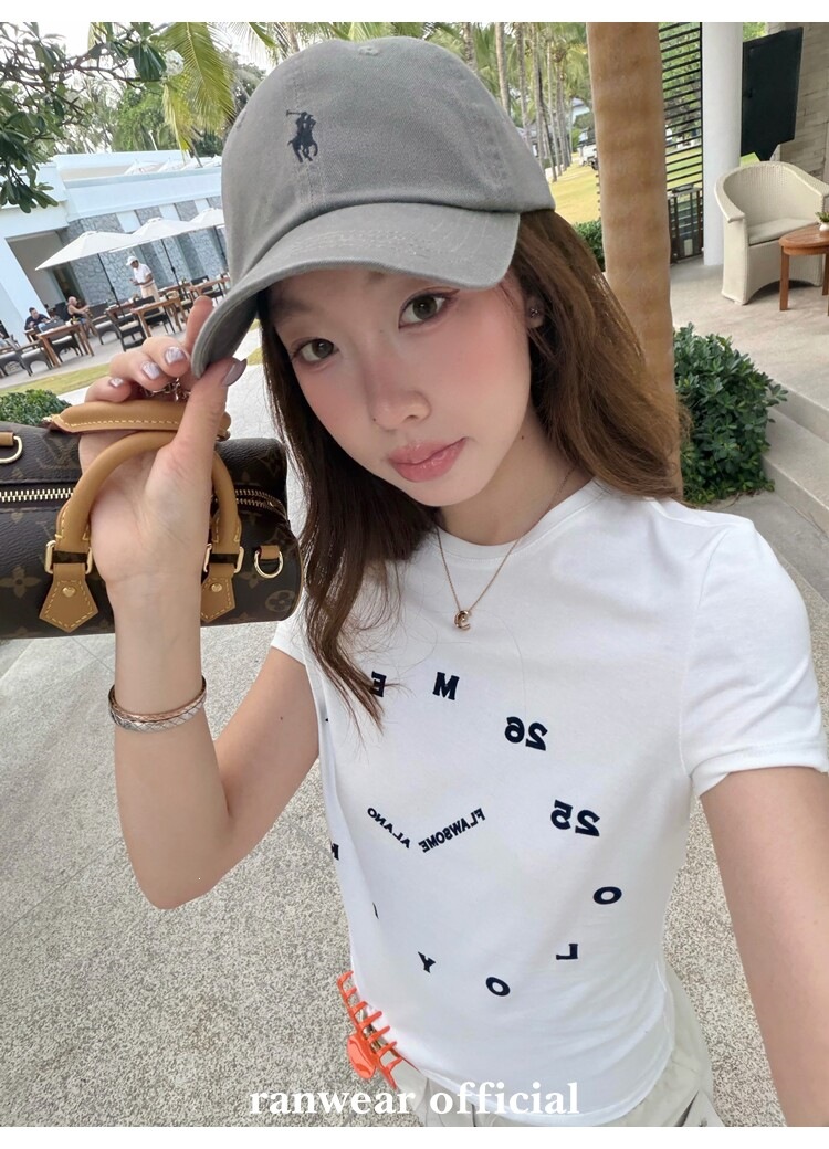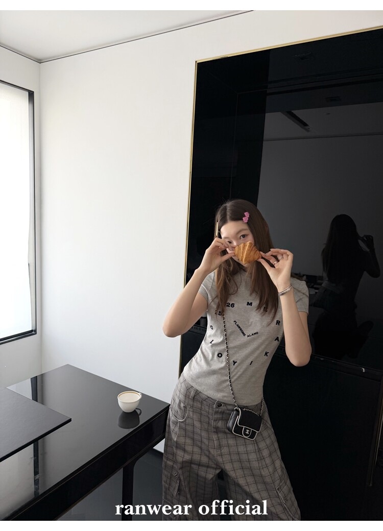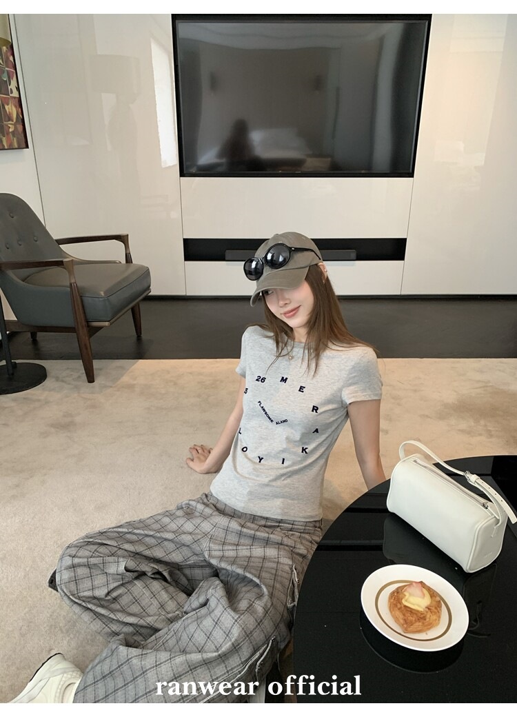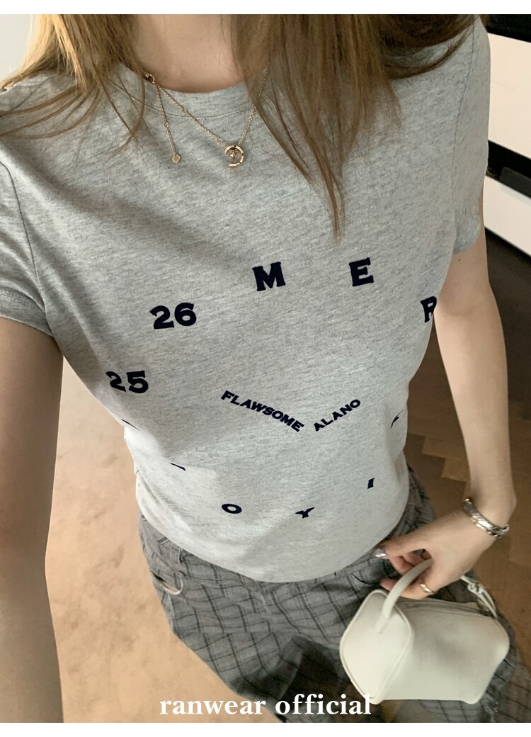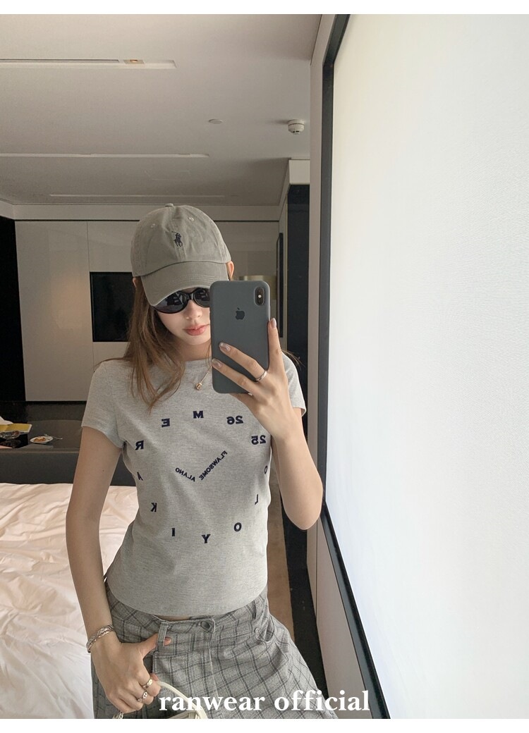 Ranwear'私服t'百搭圆领休闲字母印花修身显身材短短袖T恤