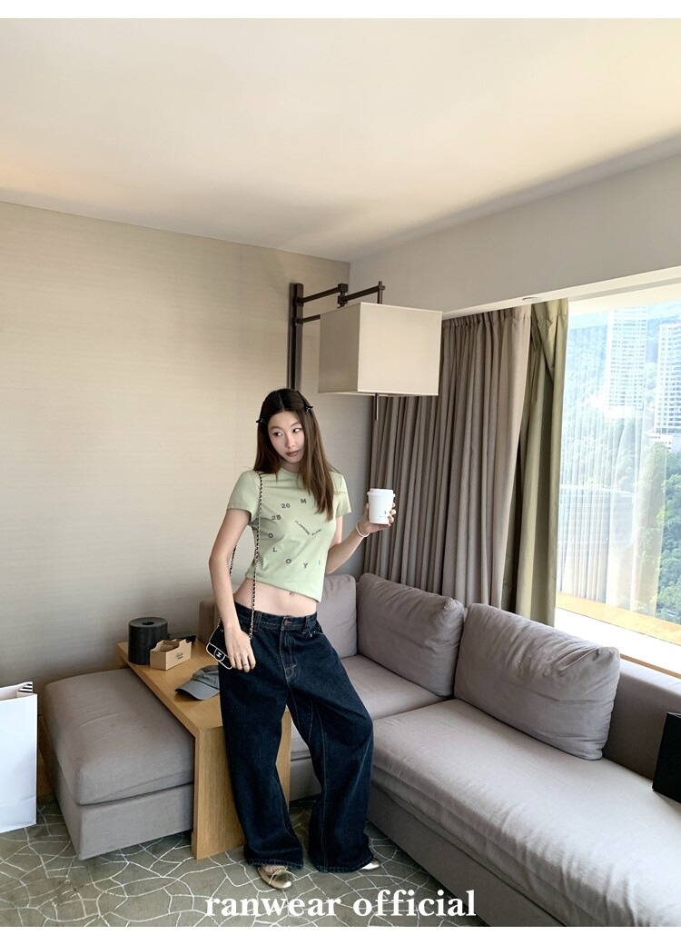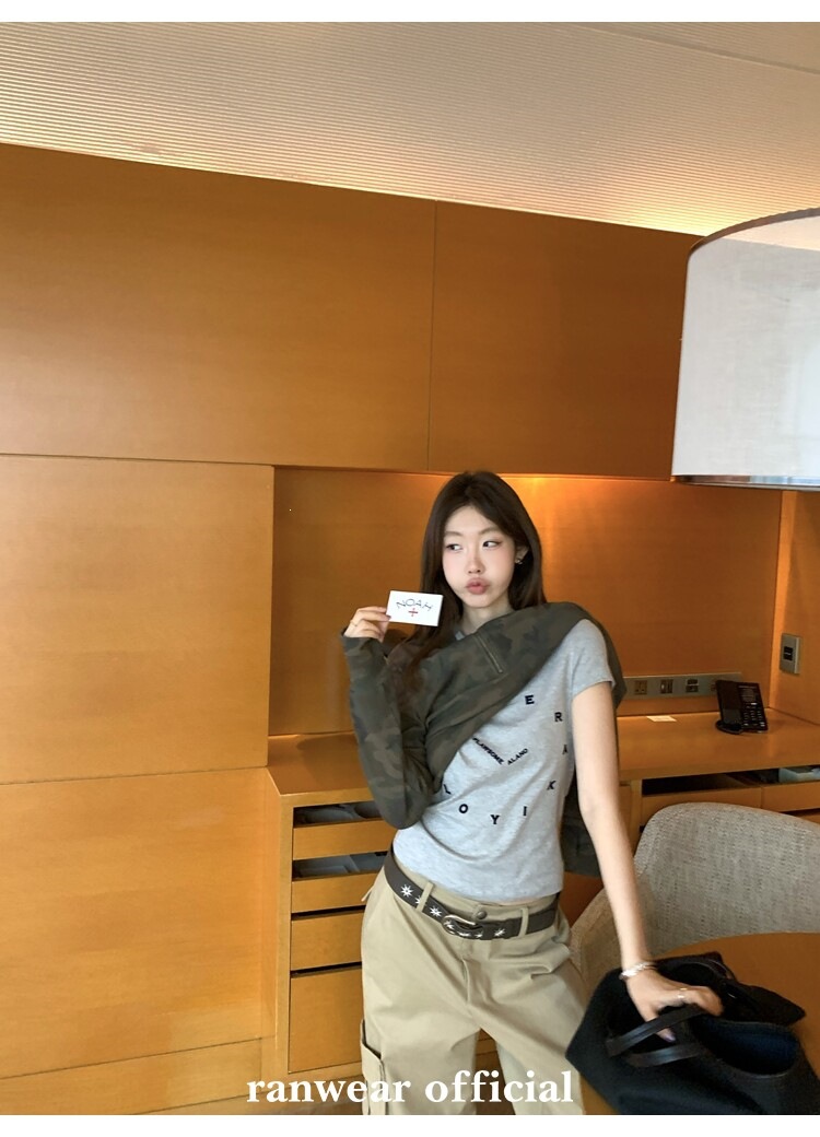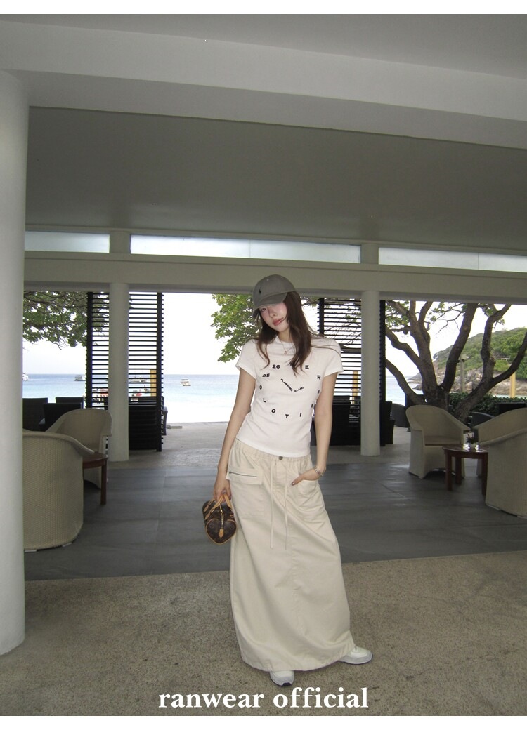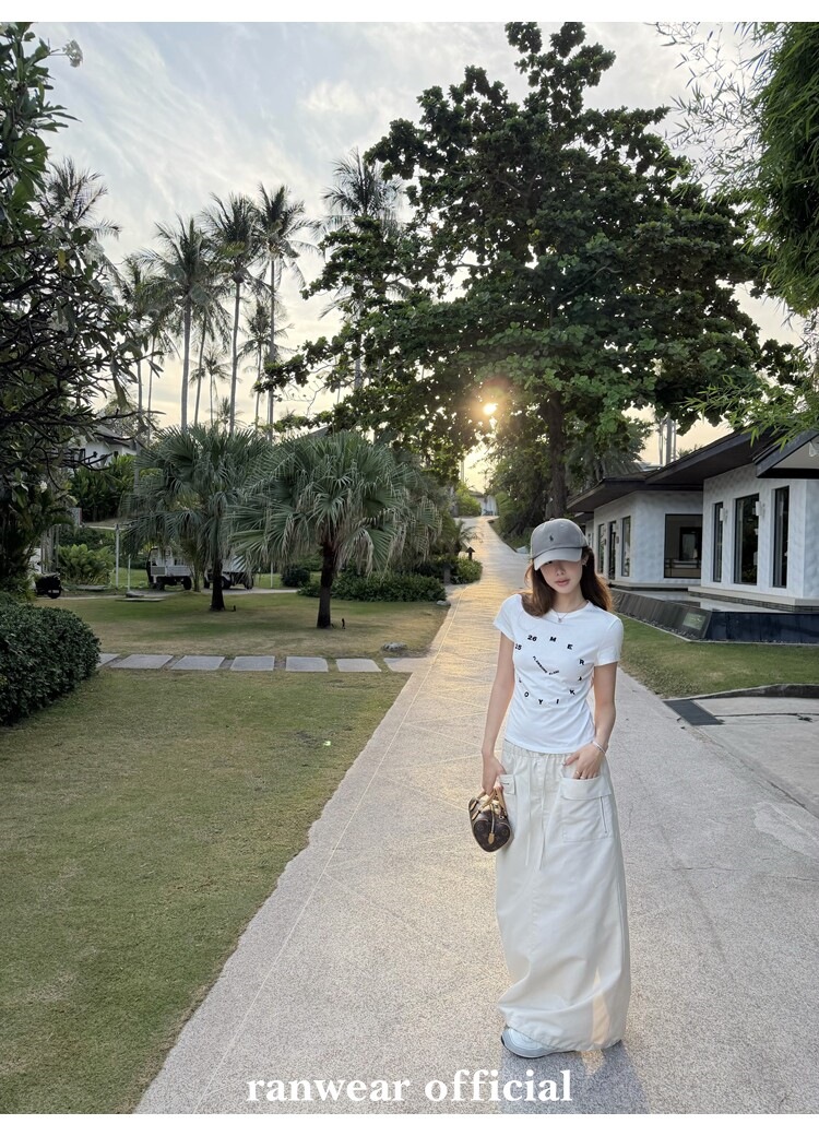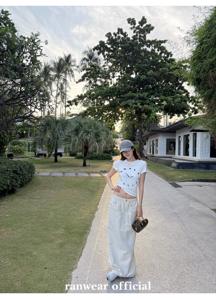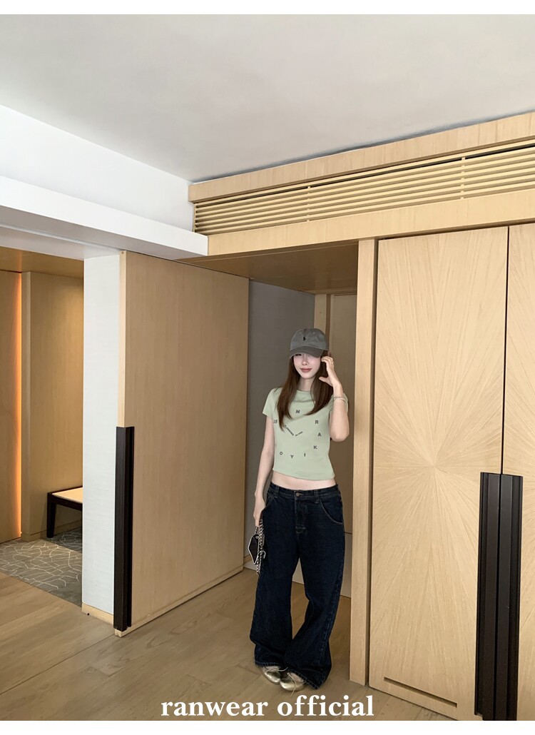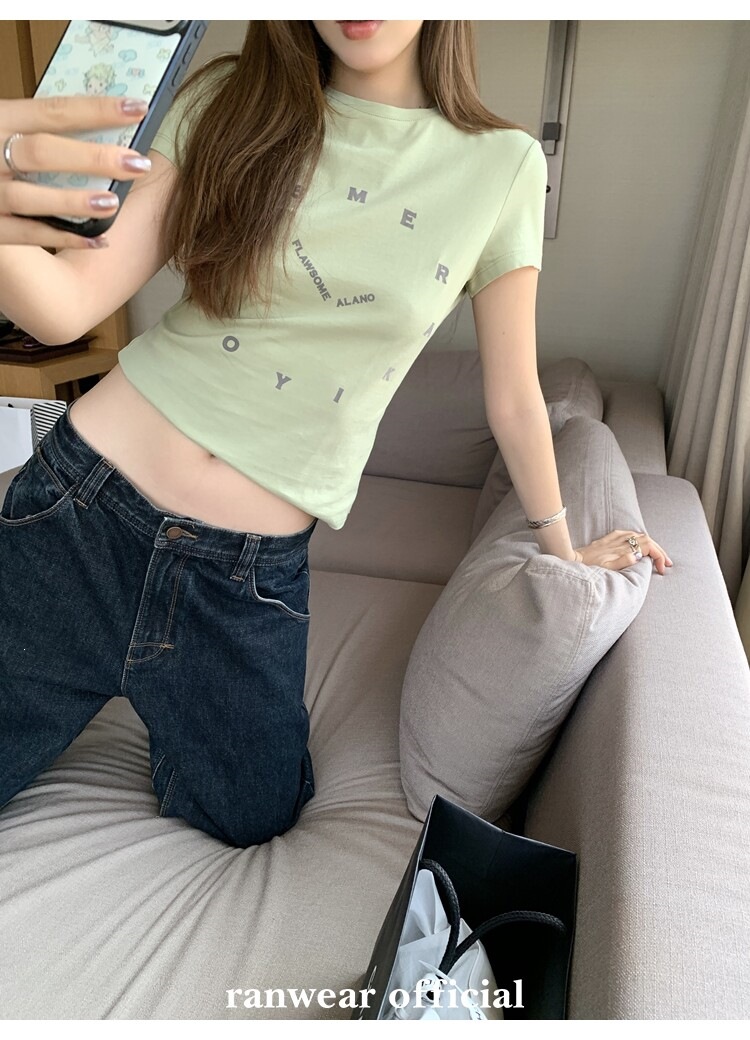 Ranwear'私服t'百搭圆领休闲字母印花修身显身材短短袖T恤