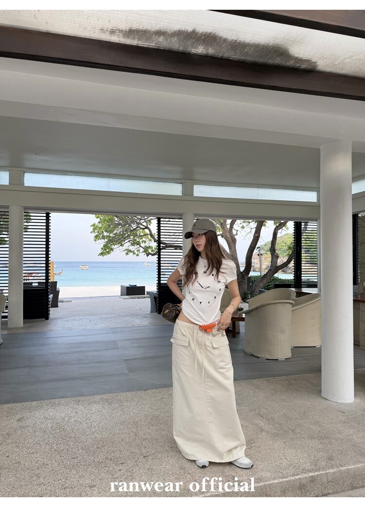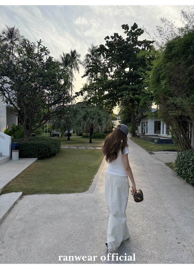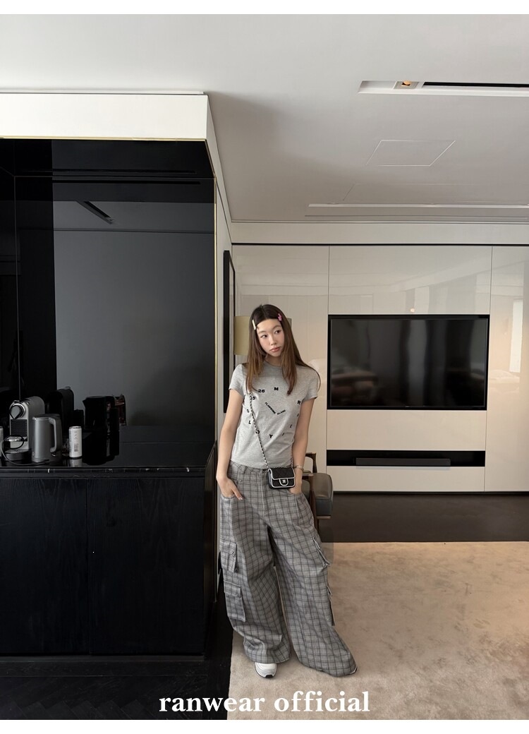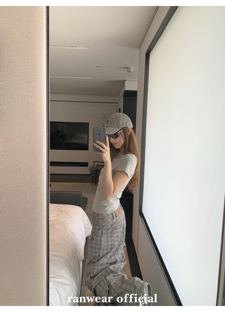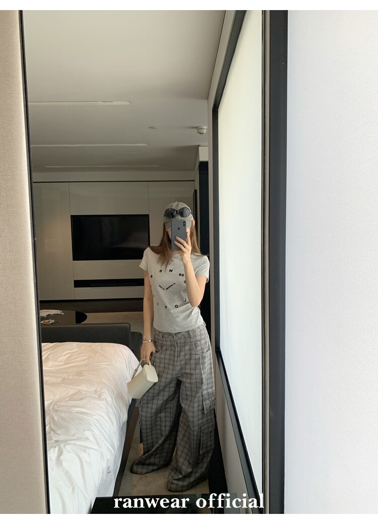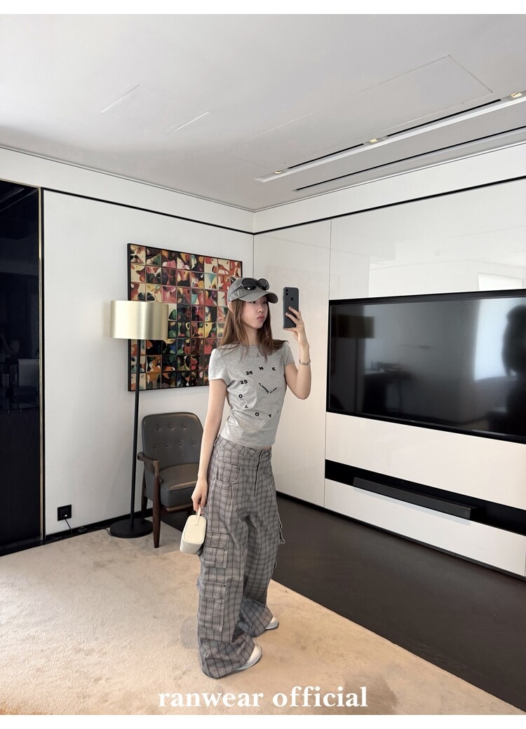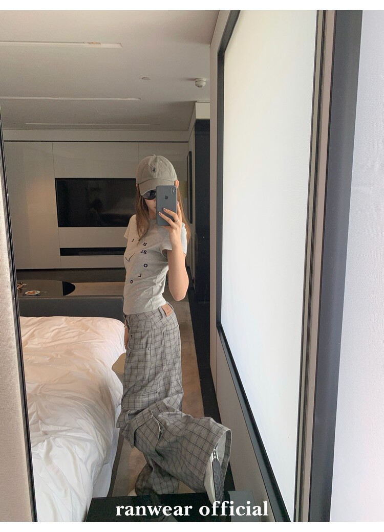 Ranwear'私服t'百搭圆领休闲字母印花修身显身材短短袖T恤