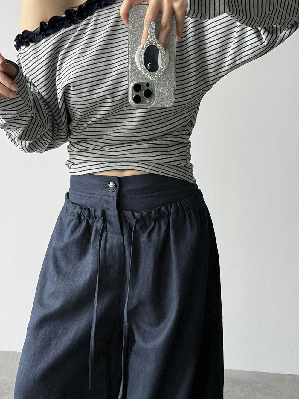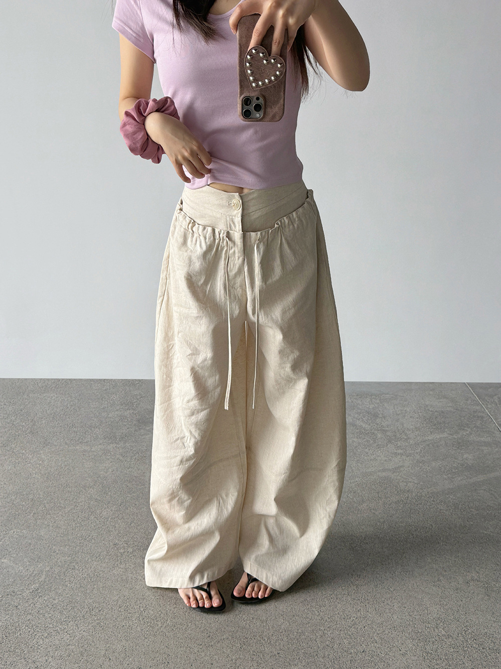 【王琪芝】韩系麻棉混纺系带休闲裤女春夏复古百搭显瘦裤子WQ236