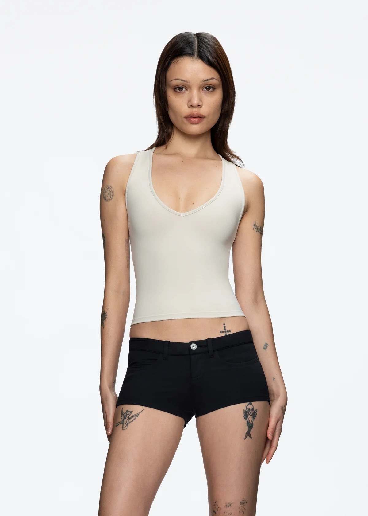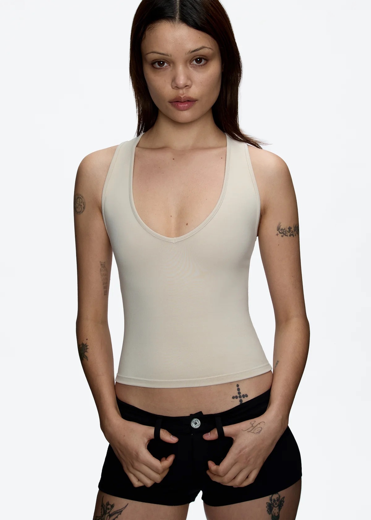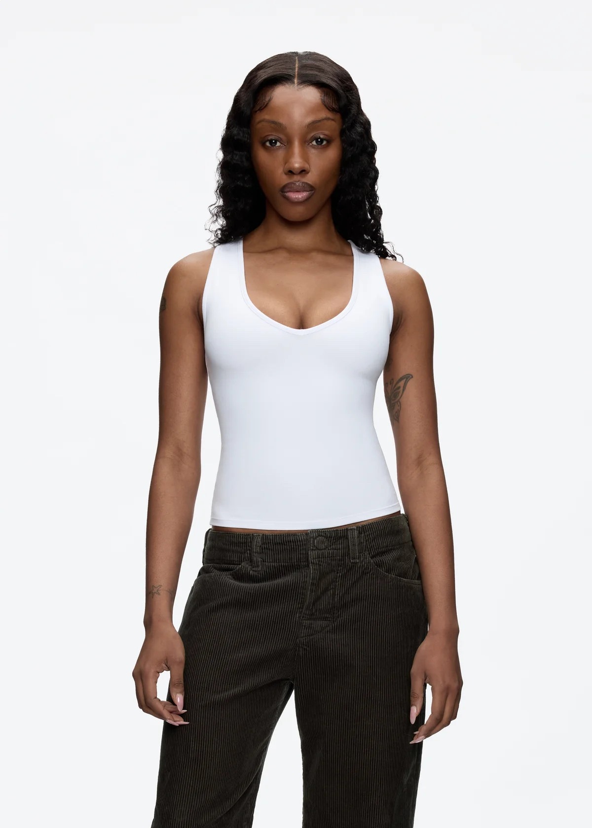 现货美式辣妹Tankair深V领工字背心上衣纯欲修身运动健身吊带女