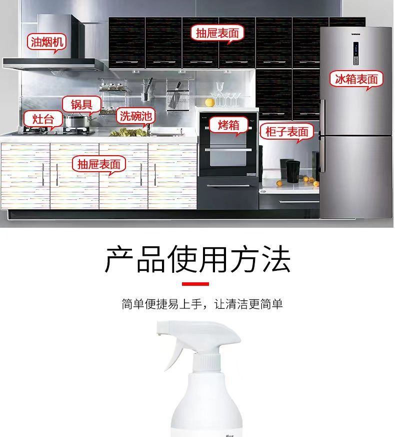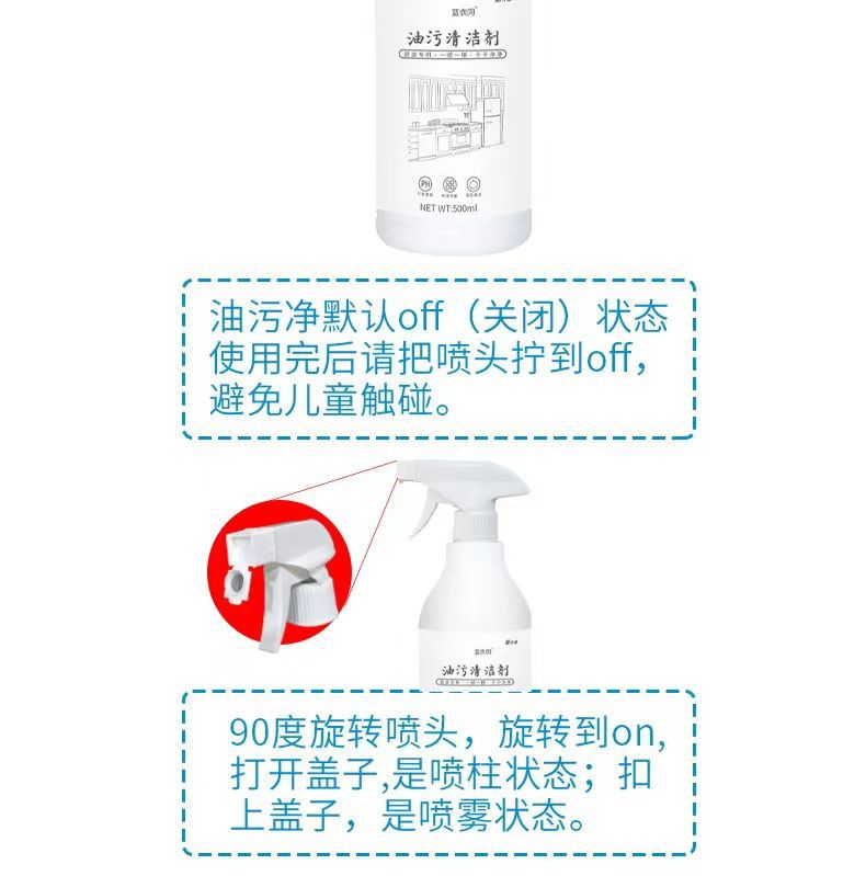 油污净厨房泡沫型油污清净剂500g油烟机燃气灶油烟净清洗剂