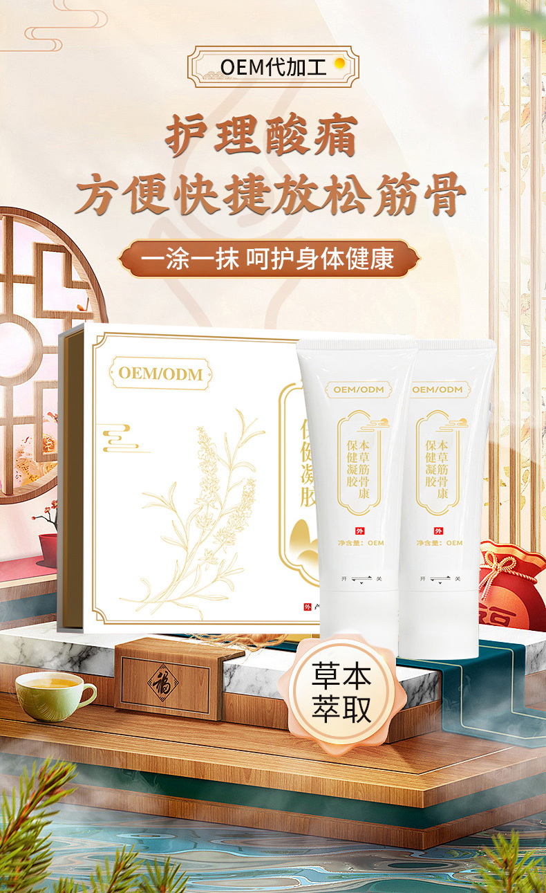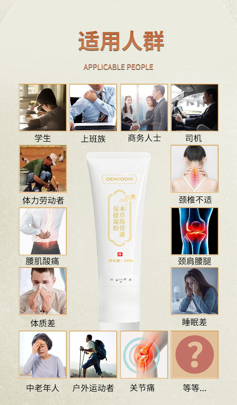 OEM本草筋骨康保健凝胶 颈肩腰腿关节不适筋骨佰草保健凝胶加工