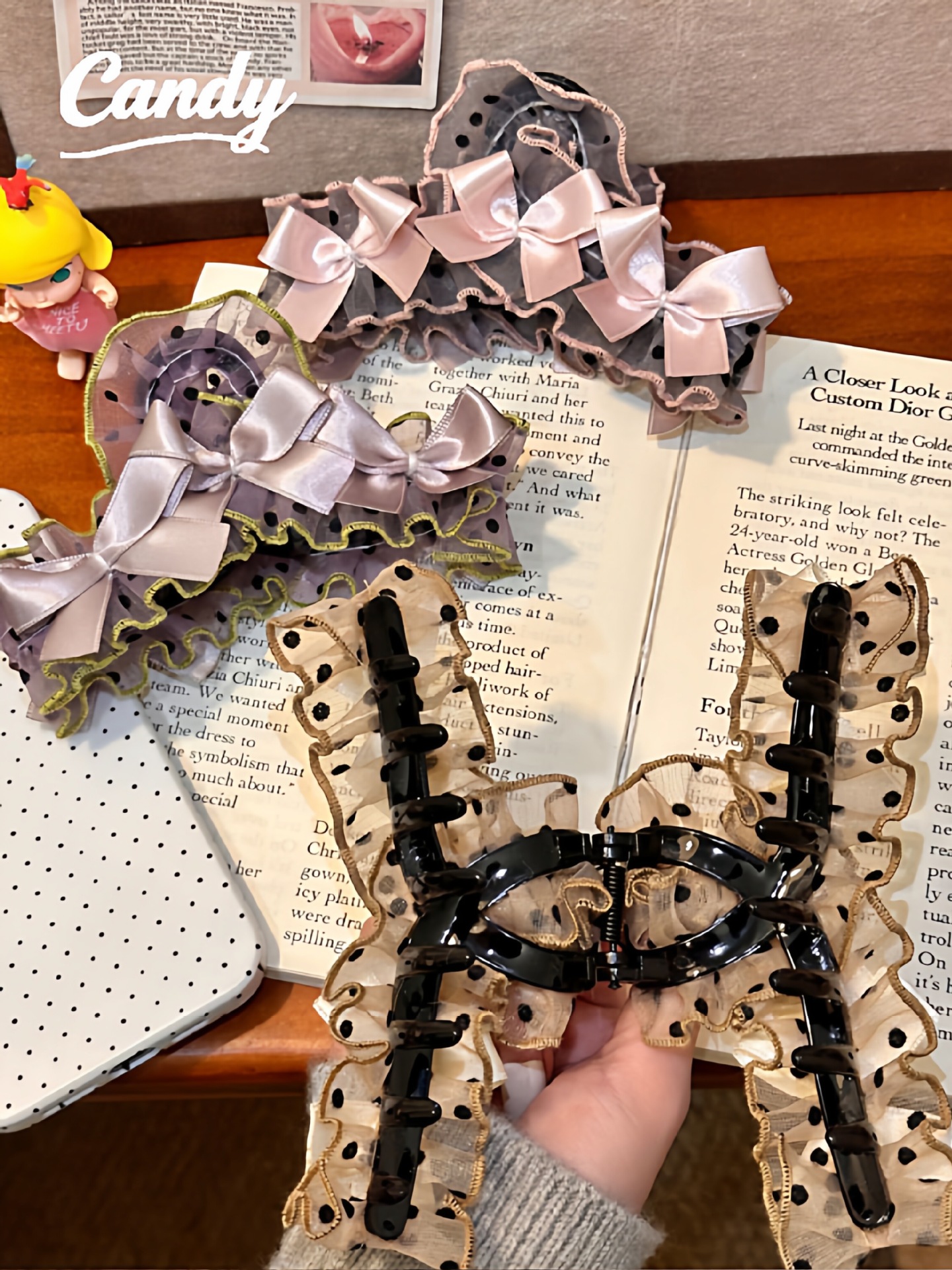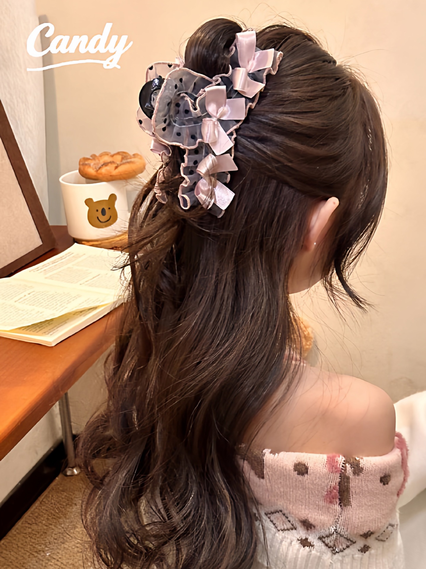 Candy韩国ins蕾丝蝴蝶结鲨鱼夹新时尚气质通勤高马发夹女