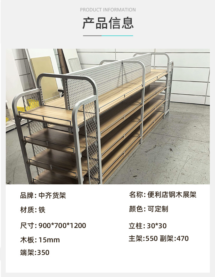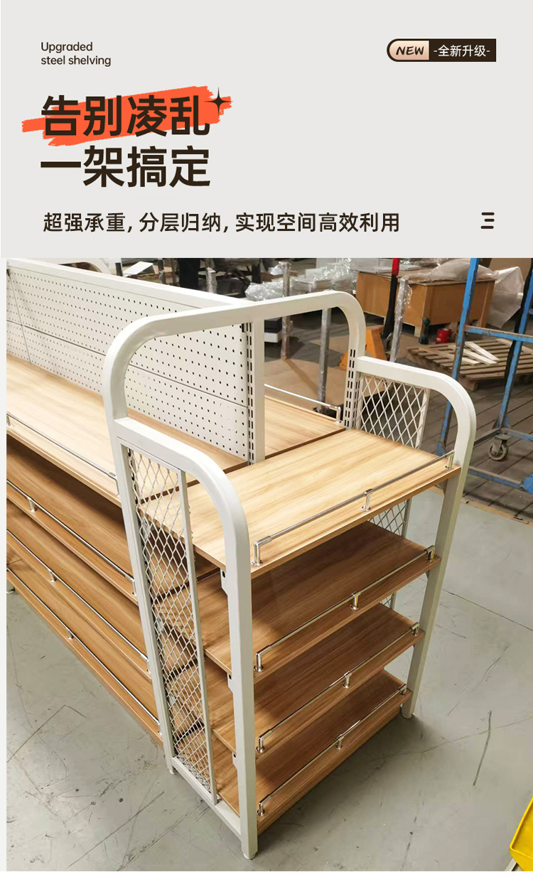 商超便利店货架展示架展示柜中岛柜中岛架钢木货架工厂批发货架