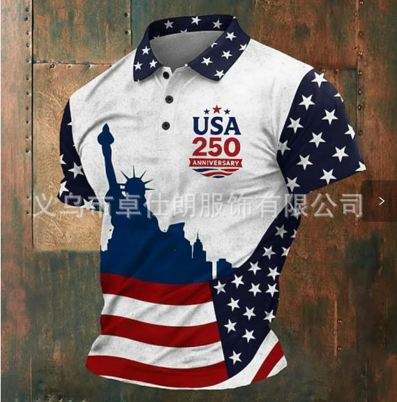 美国 250 周年纪念主题 Polo 衫 新款星条旗自由女神印花 跨境美,批发价,价格:27,厂家直销,美国 250 周年纪念主题 Polo 衫 新款星条旗自由女神印花 跨境美,免费拿样。