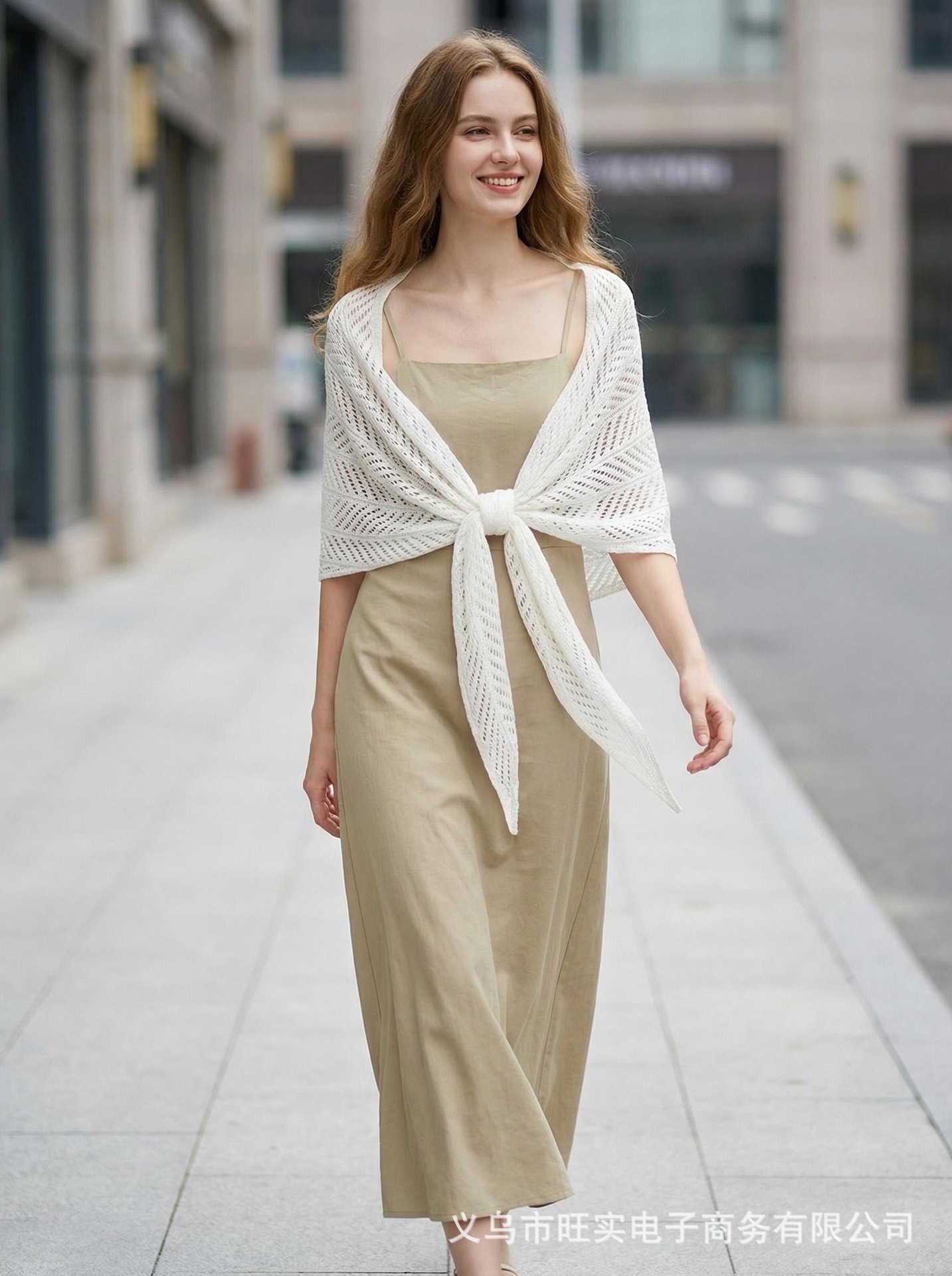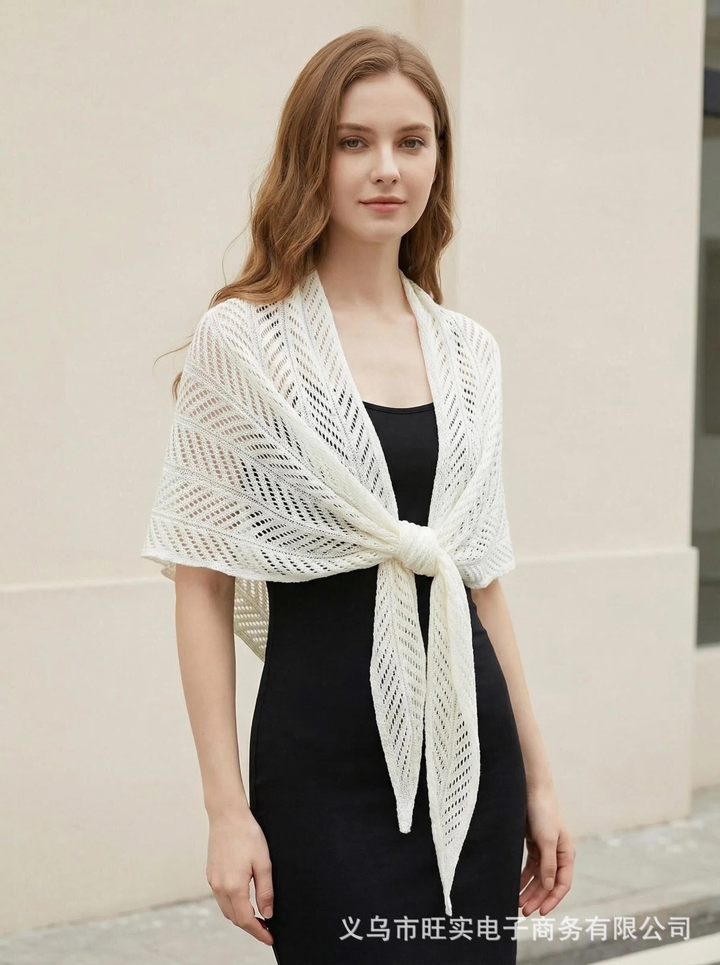 新款镂空三角大披肩 气质百搭纯色简约防晒保暖围巾 空调室内外套