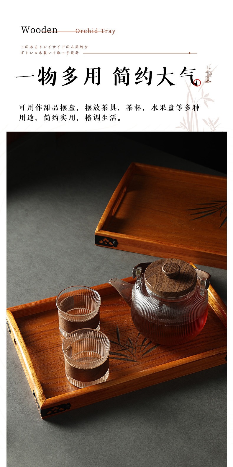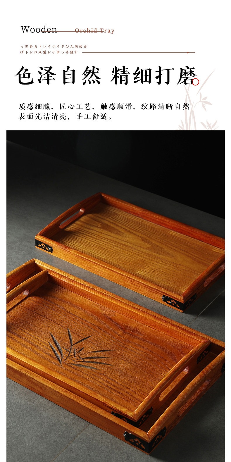 日式木质托盘家用手提木头盘子长方形酒店客厅茶具茶水杯木制茶盘