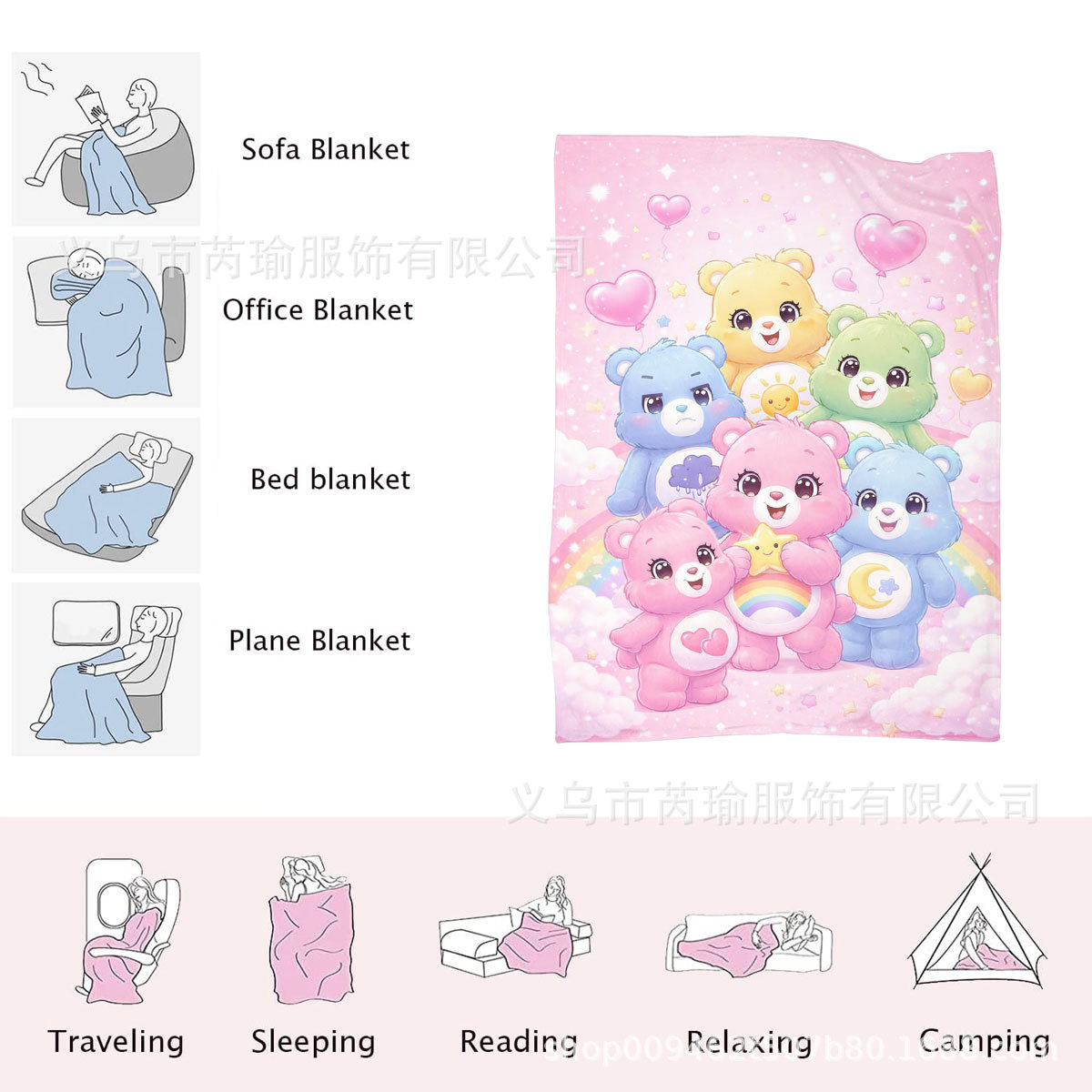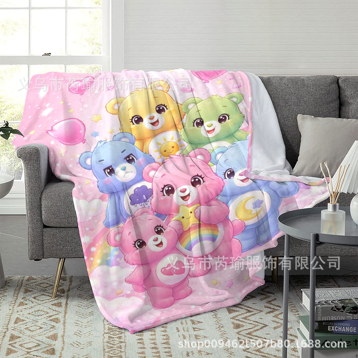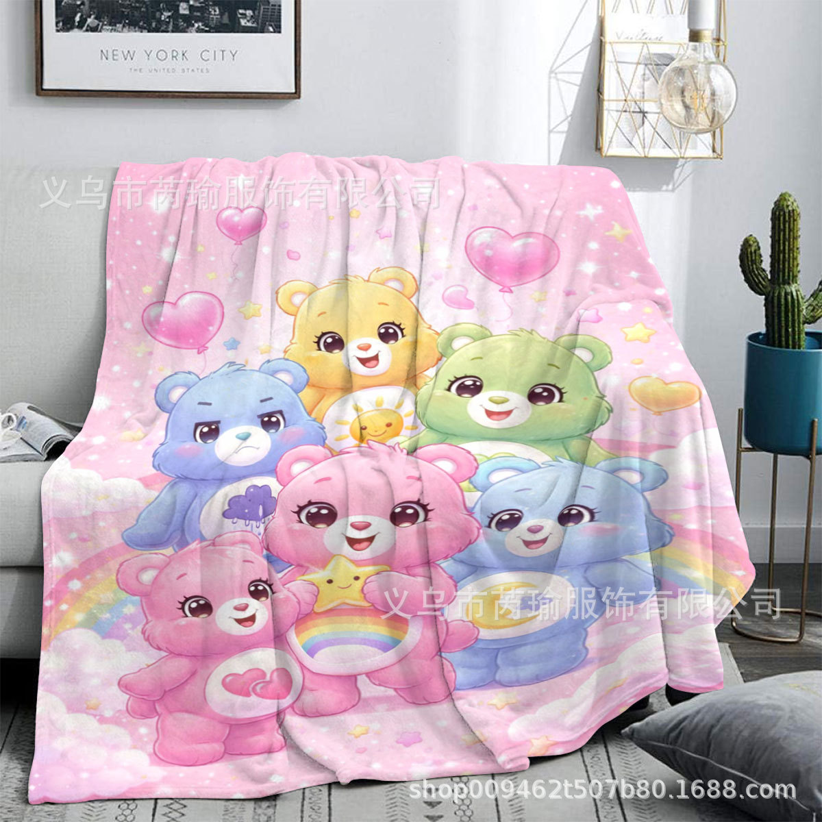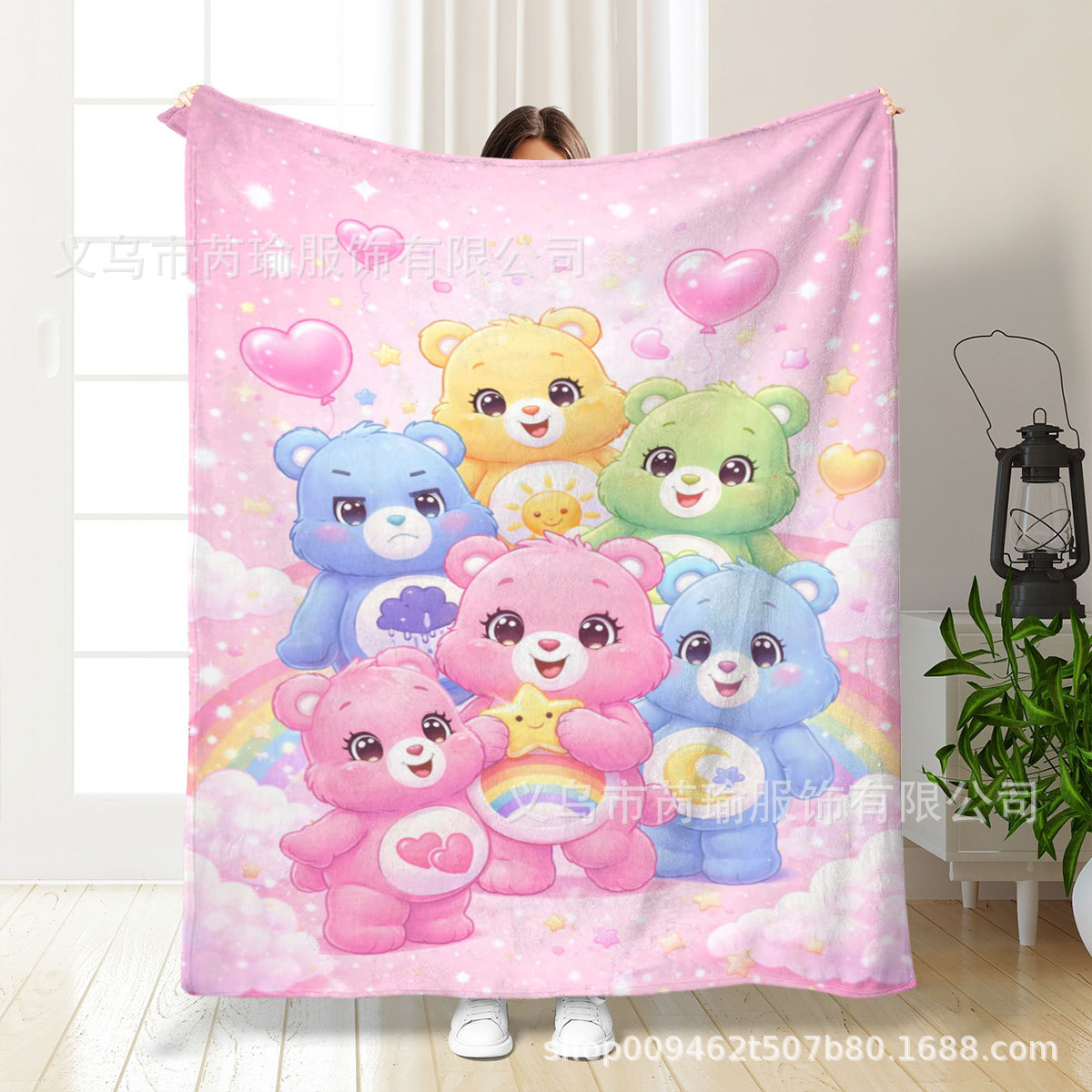 跨境temu亚马逊爱心熊关爱熊卡通法兰绒毛毯沙发毯空调毯午休毯