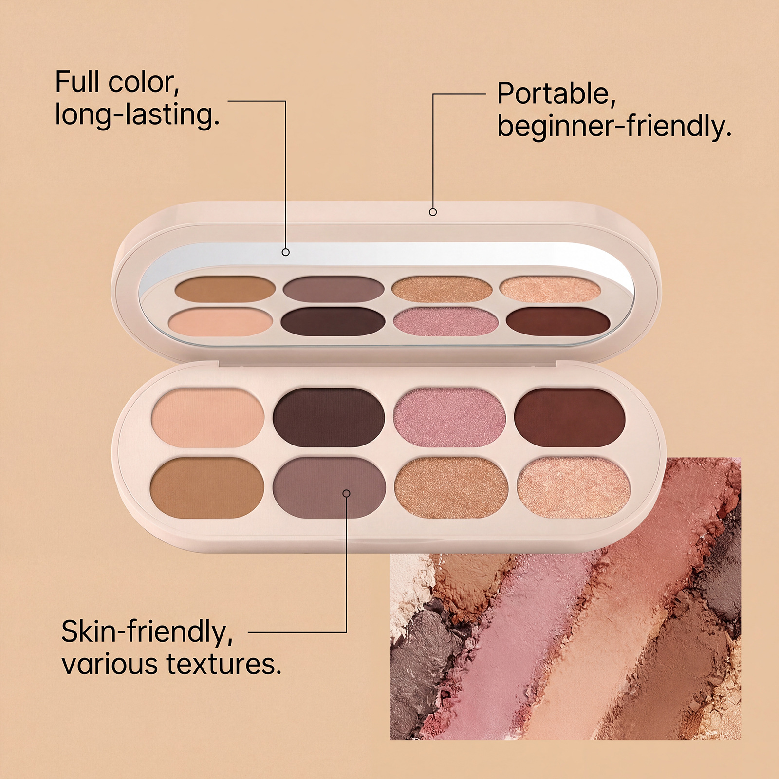 多彩眼影盘 轻盈亮泽显色日常小巧便携通勤适用粉质细腻色彩丰富