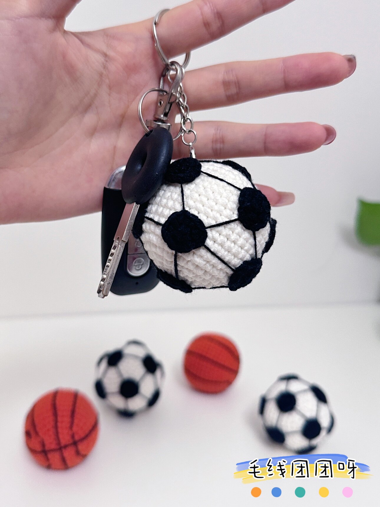 毛线团团呀篮球挂件足球挂件纯手钩织礼物