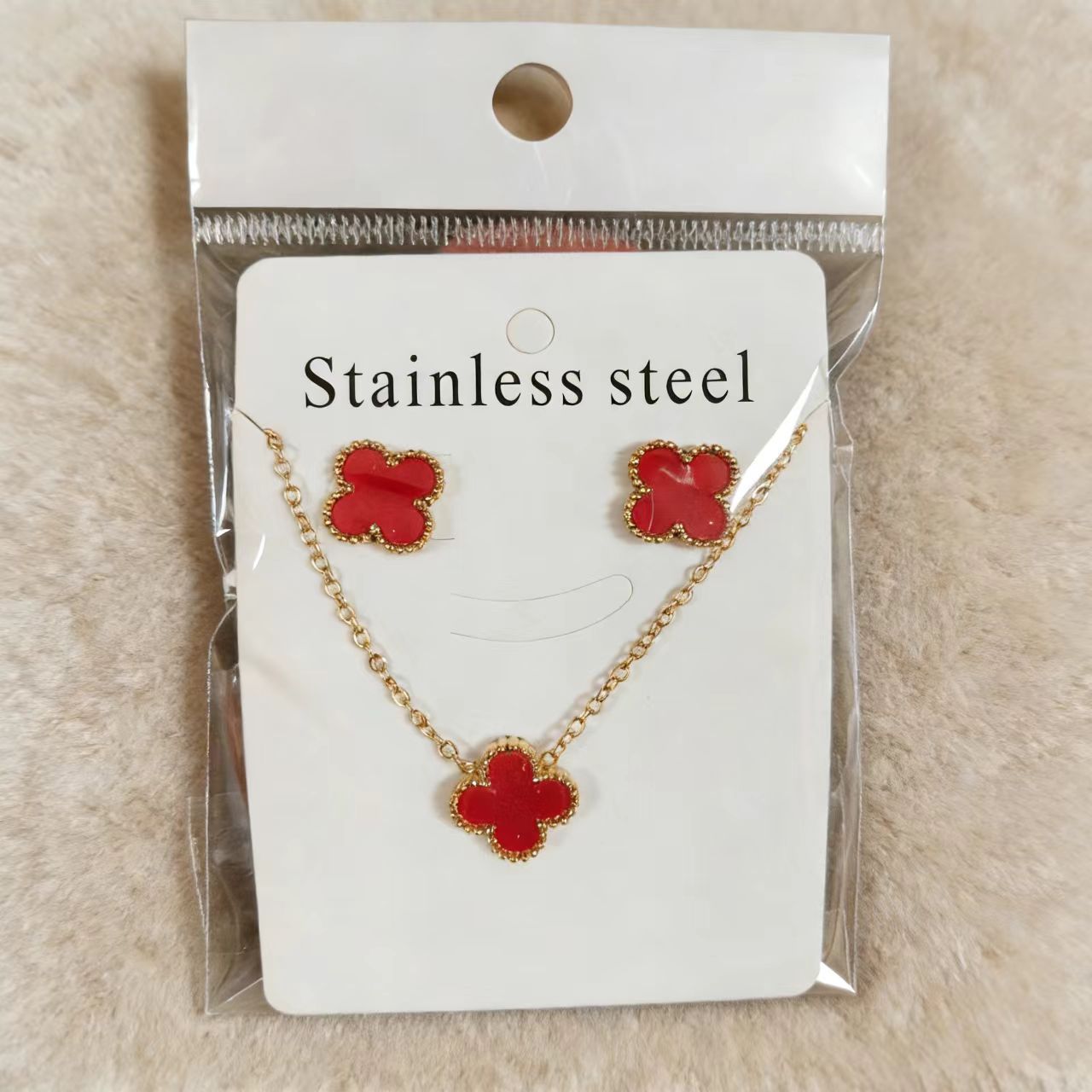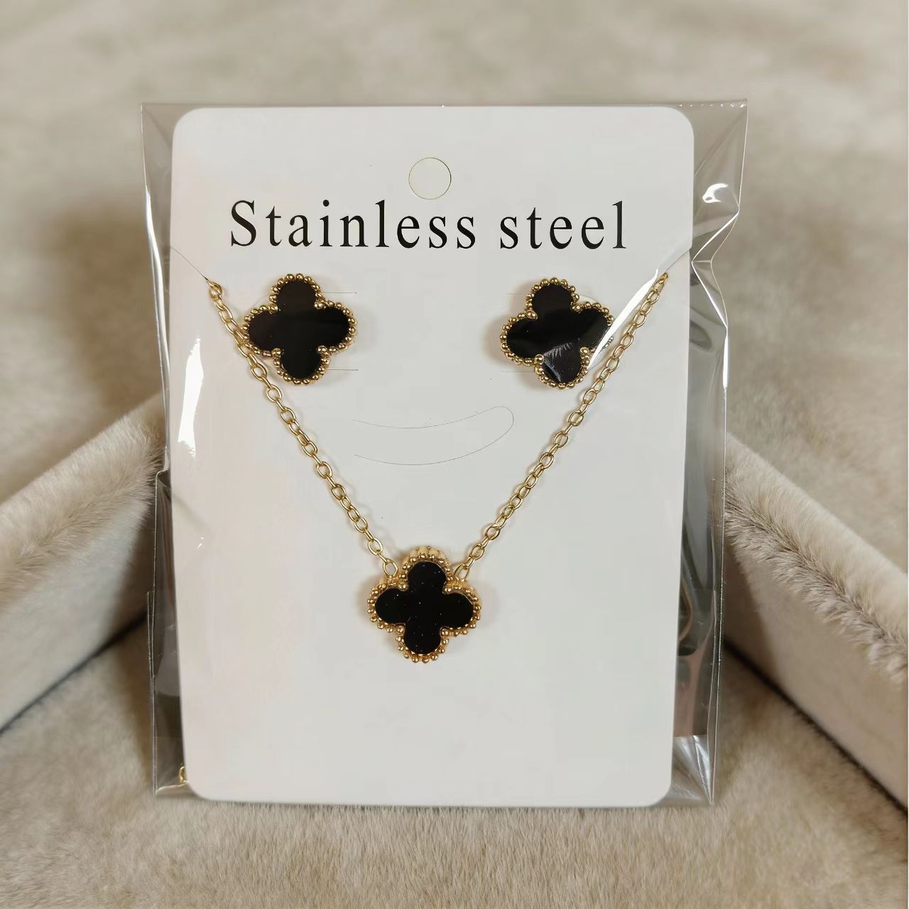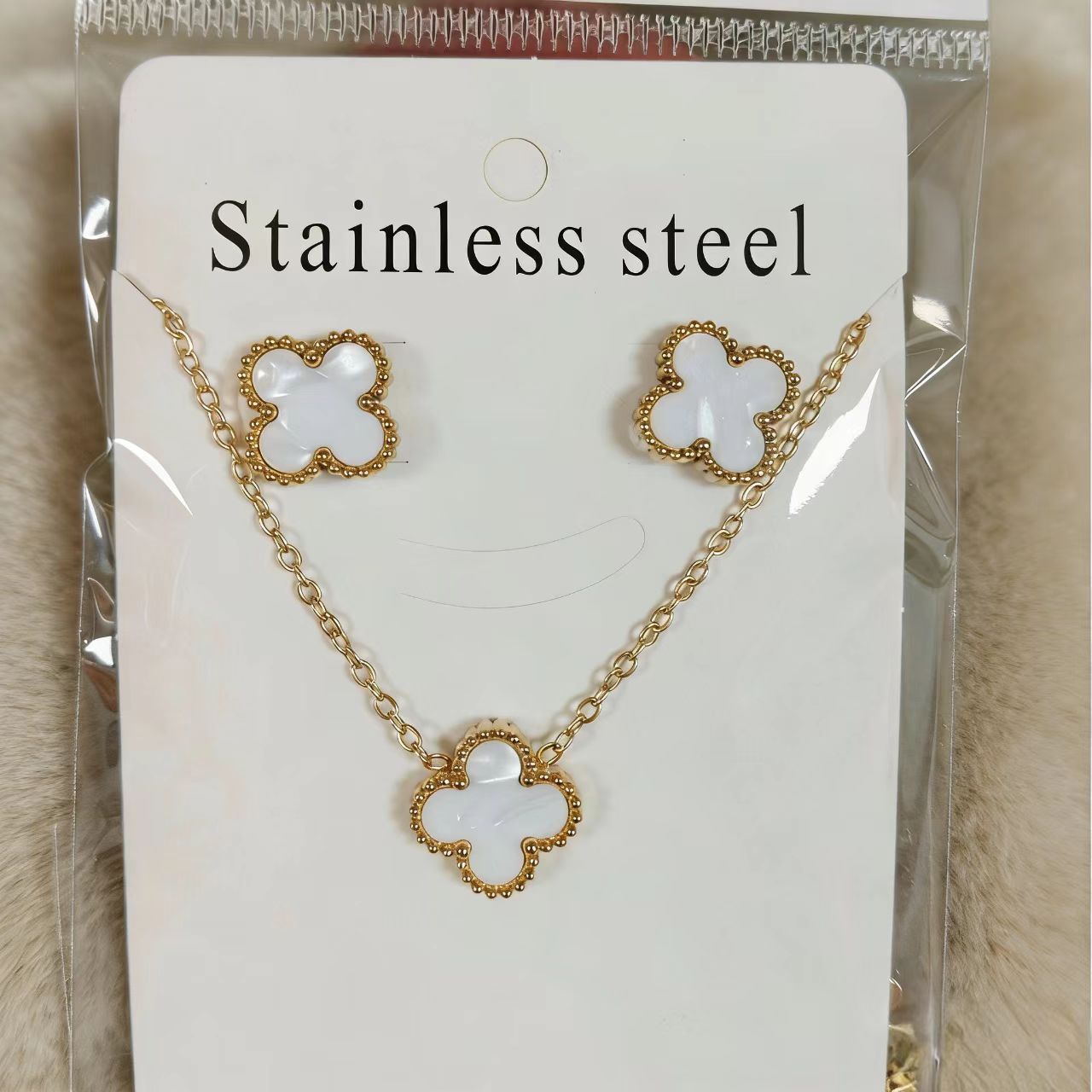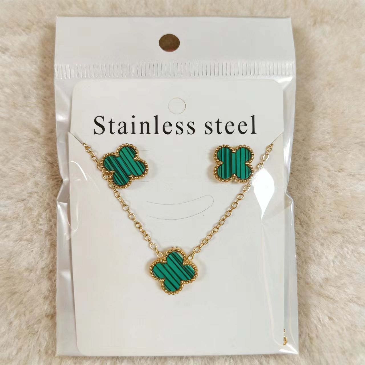 钛钢四叶草项链耳钉套装 轻奢不掉色锁骨链 网红同款耳饰工厂批发,批发价,价格:4.4,厂家直销,钛钢四叶草项链耳钉套装 轻奢不掉色锁骨链 网红同款耳饰工厂批发,免费拿样。
