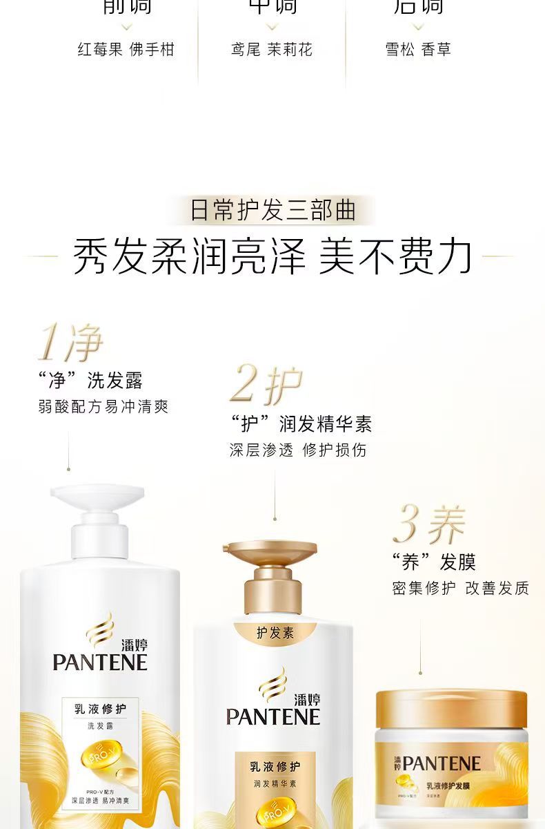 潘婷洗发水大瓶装丝质顺滑乳液修复水泡弹水养洗发露洗头膏家庭装