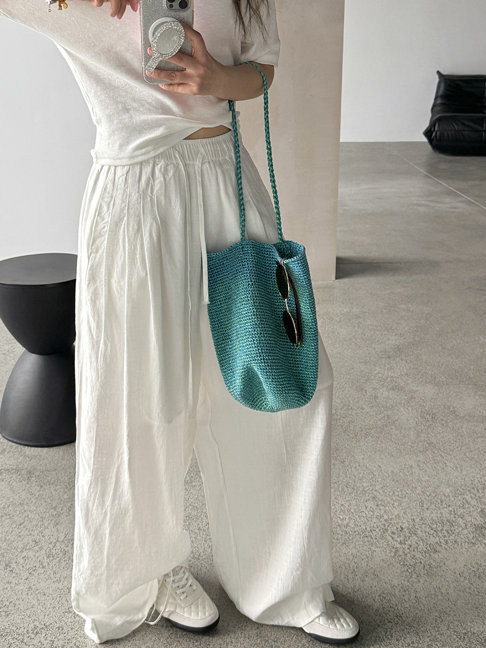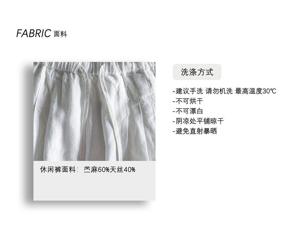 【王琪芝】主推全员自留苎麻抽绳松紧腰阔腿裤女夏百搭长裤WQ251