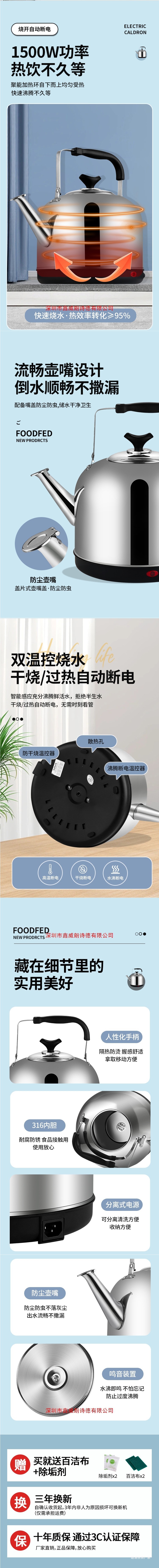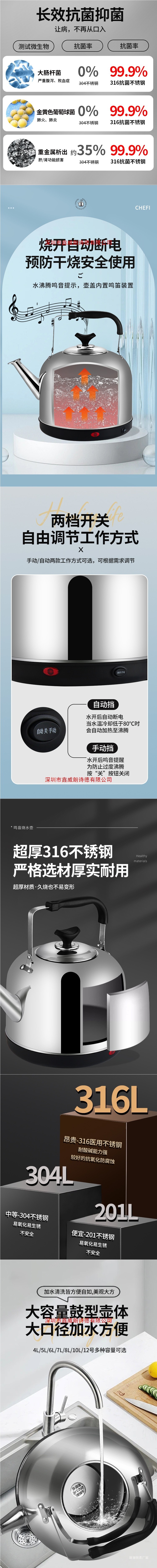 316不锈钢电热水壶烧水壶大容量自动断电保温电壶家用电水壶鸣笛