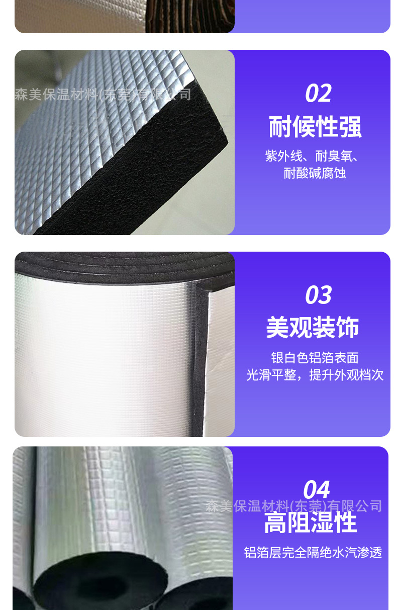 贴铝箔橡塑板支持定制隔热消音防潮防水阻燃板材管材制冷管电伴热