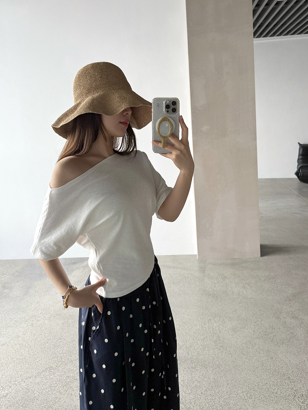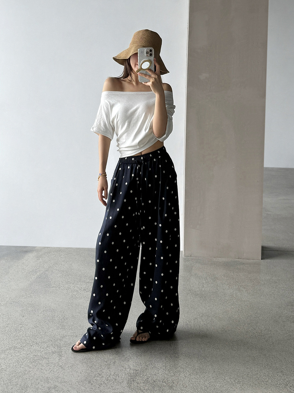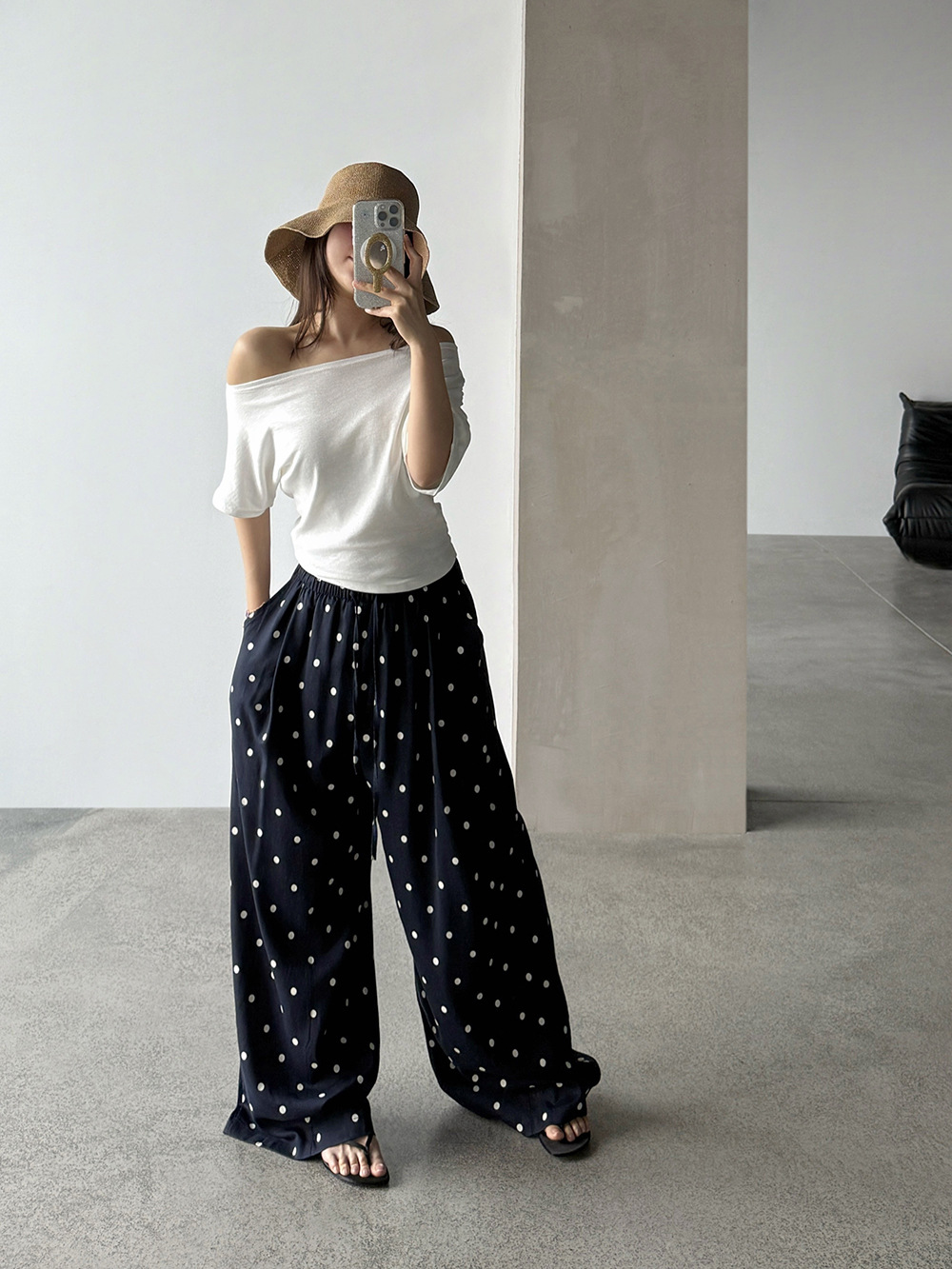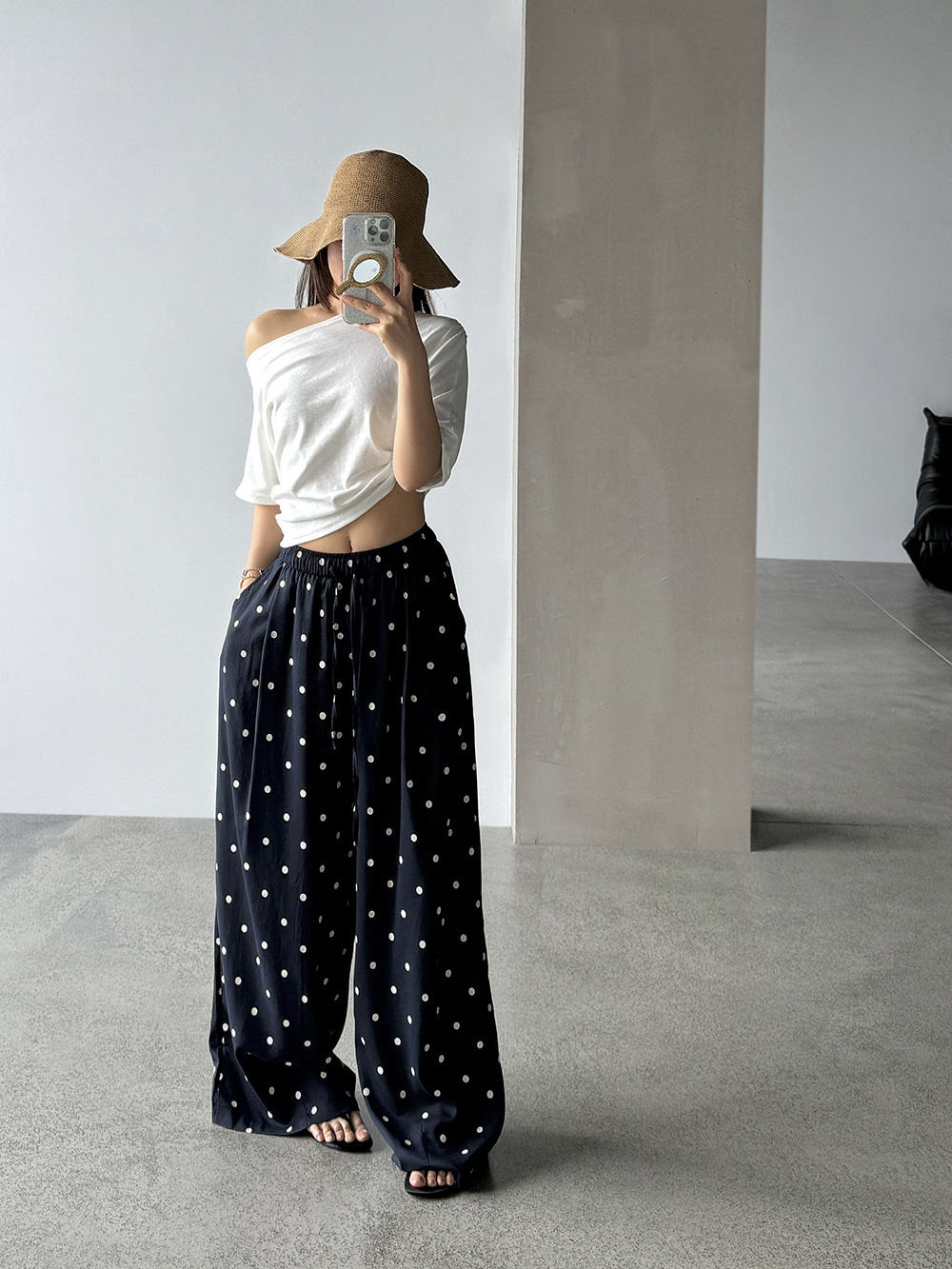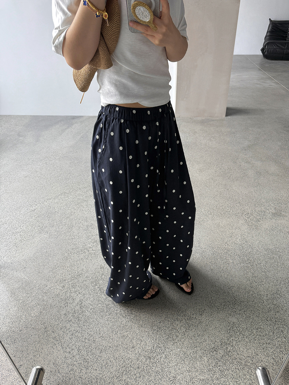 【王琪芝】苎麻设计感波点阔腿裤女春夏高腰宽松通勤休闲裤WQ252