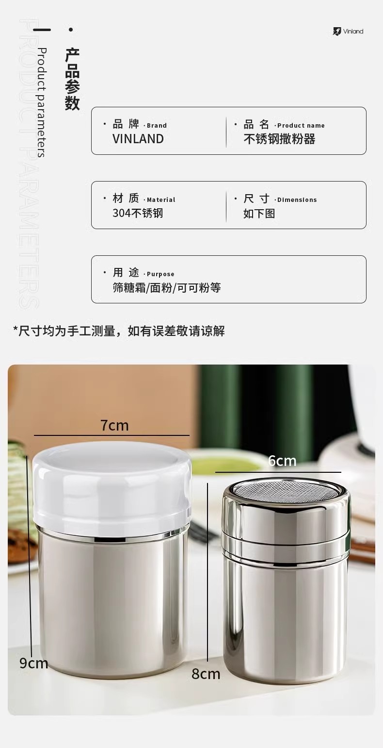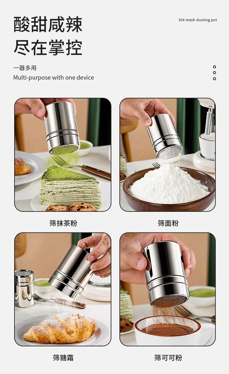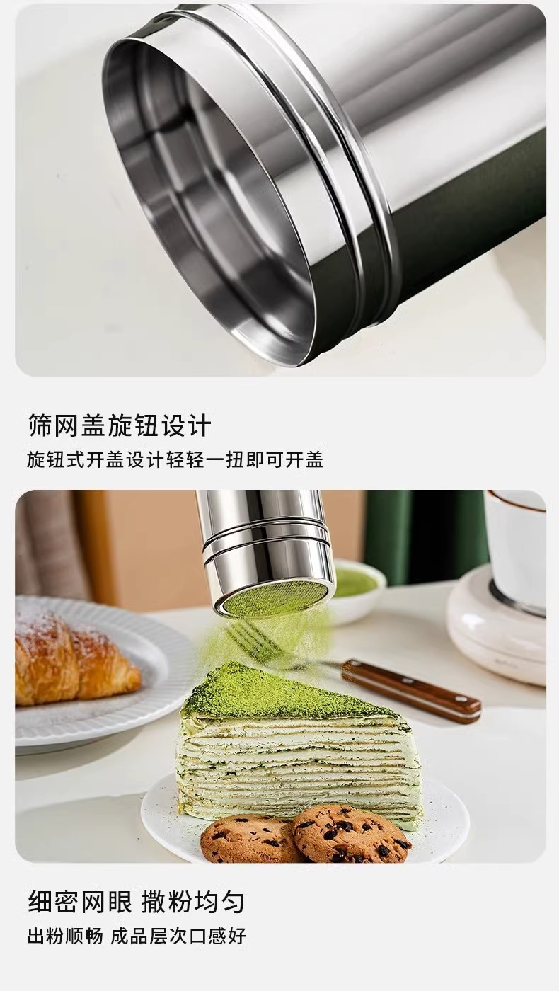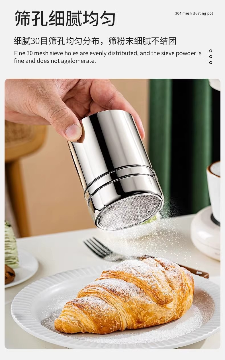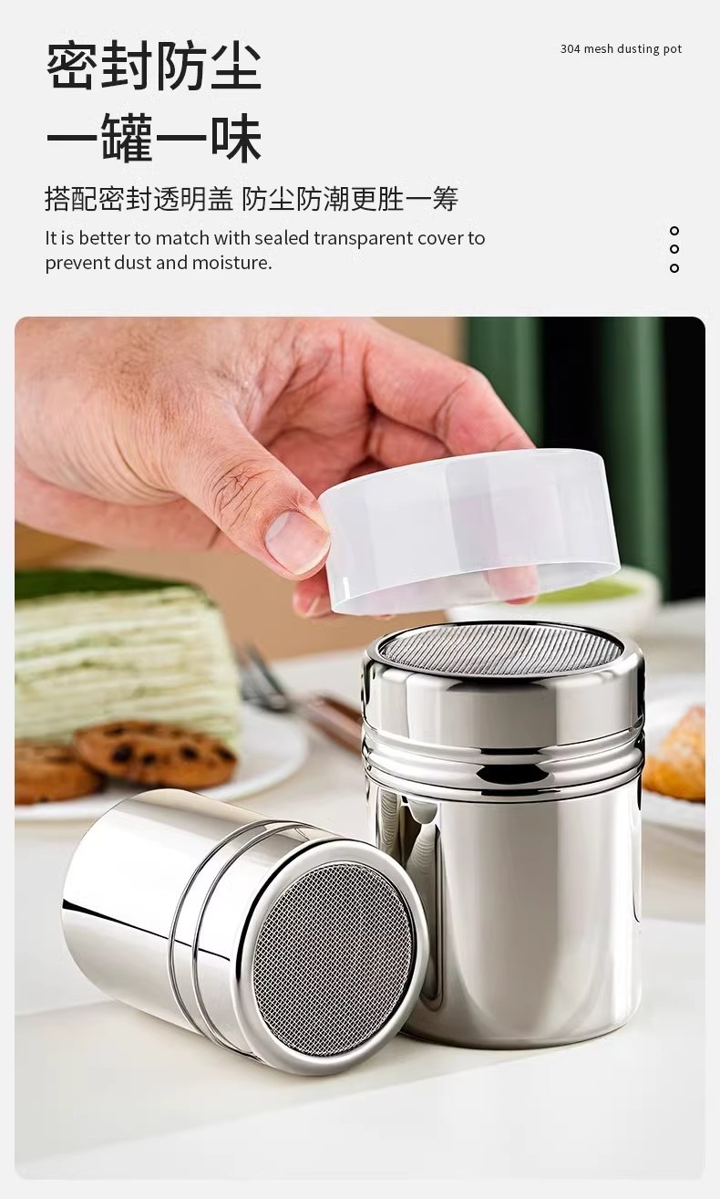 撒粉器带盖可可粉咖啡不锈钢撒粉筒撒粉罐精细网纱式桶调味瓶定制