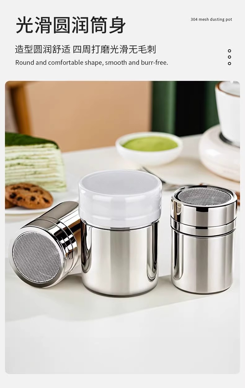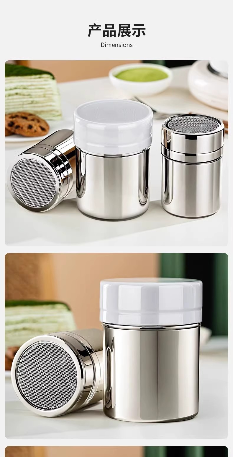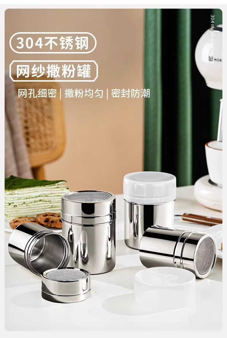 撒粉器带盖可可粉咖啡不锈钢撒粉筒撒粉罐精细网纱式桶调味瓶定制,批发价,价格:1.9,厂家直销,撒粉器带盖可可粉咖啡不锈钢撒粉筒撒粉罐精细网纱式桶调味瓶定制,免费拿样。