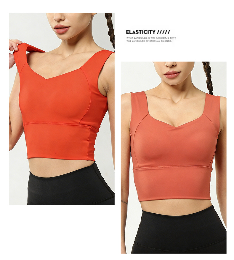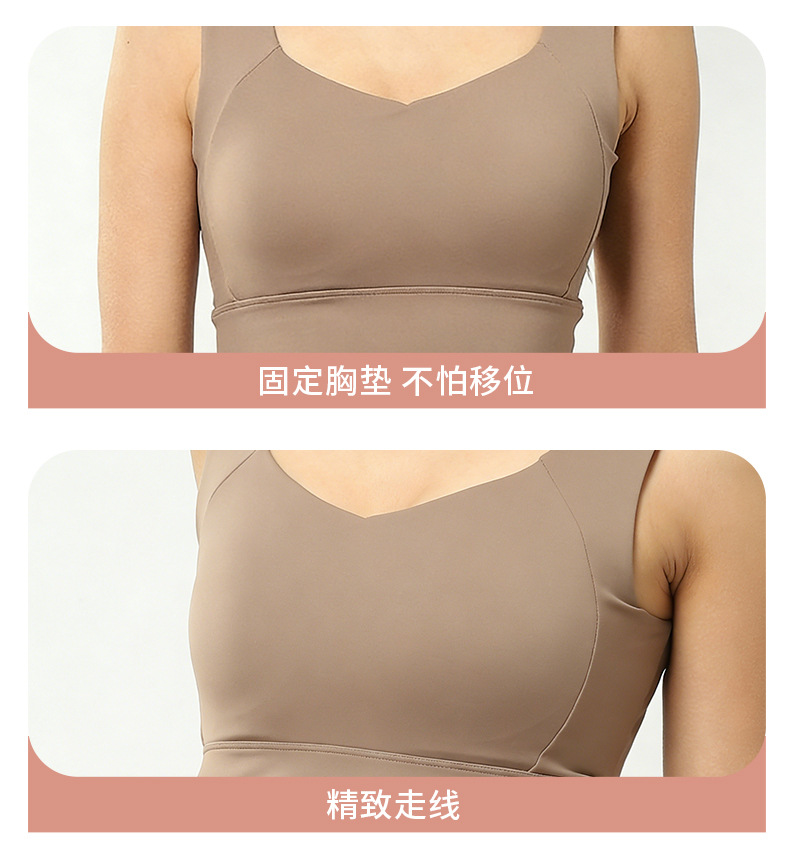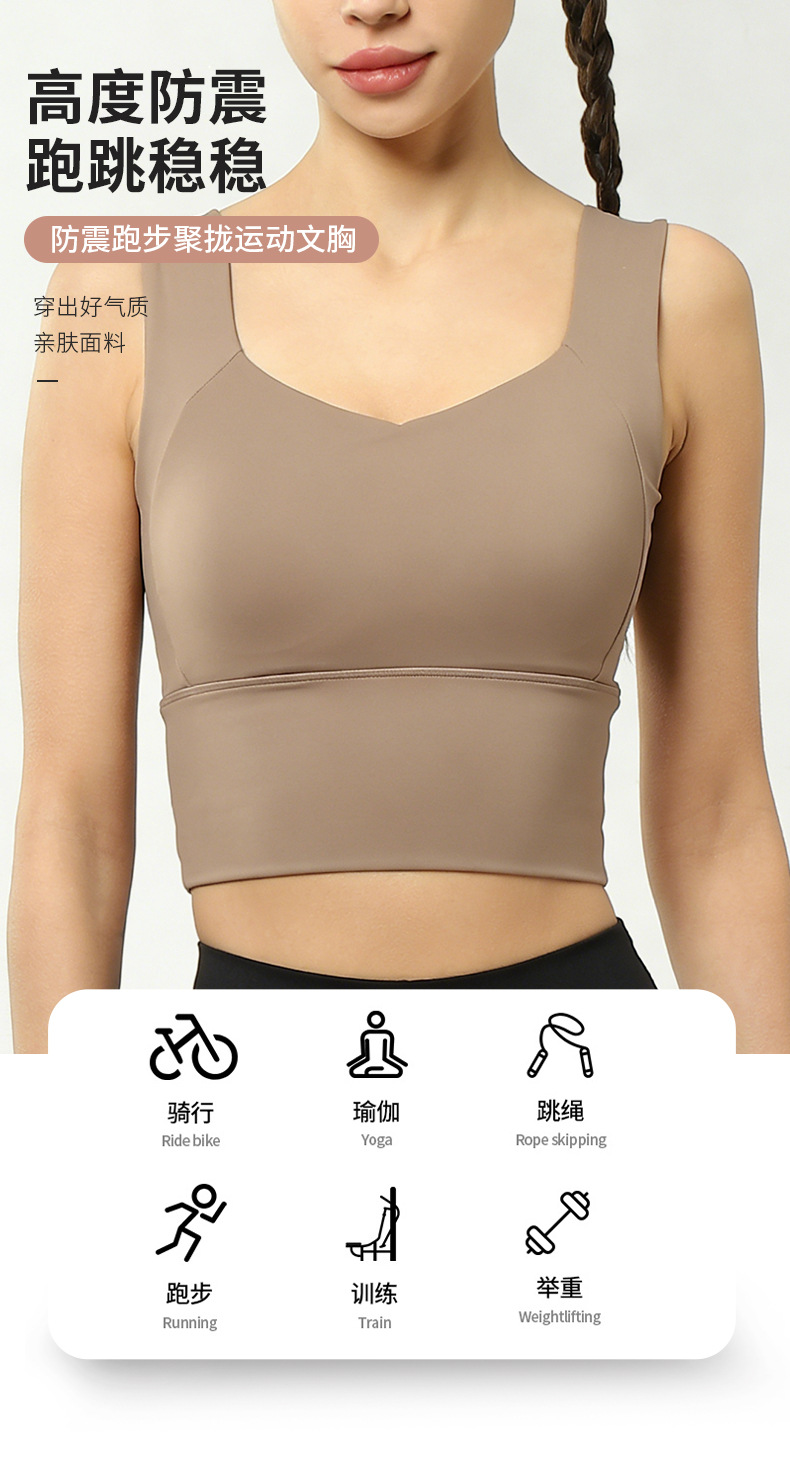 防震运动文胸V领宽肩带聚拢设计高弹透气跑步瑜伽运动内衣文胸