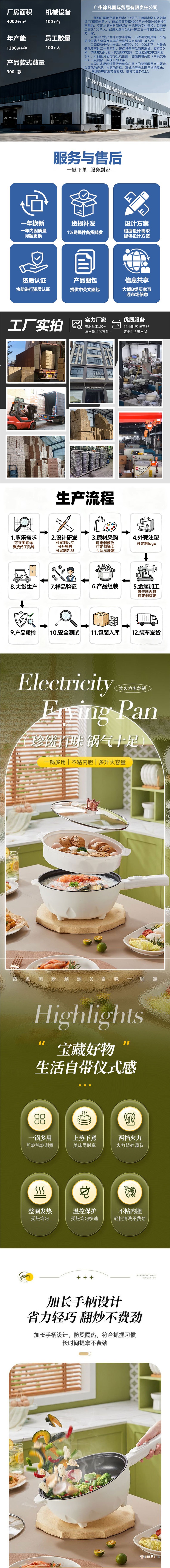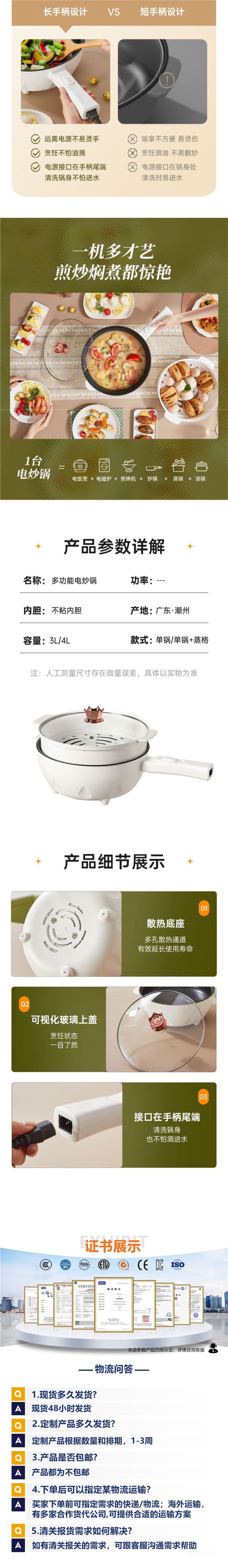 跨境电炒锅多功能电炒菜不粘锅一体式电锅宿舍电炒锅家用电煮锅