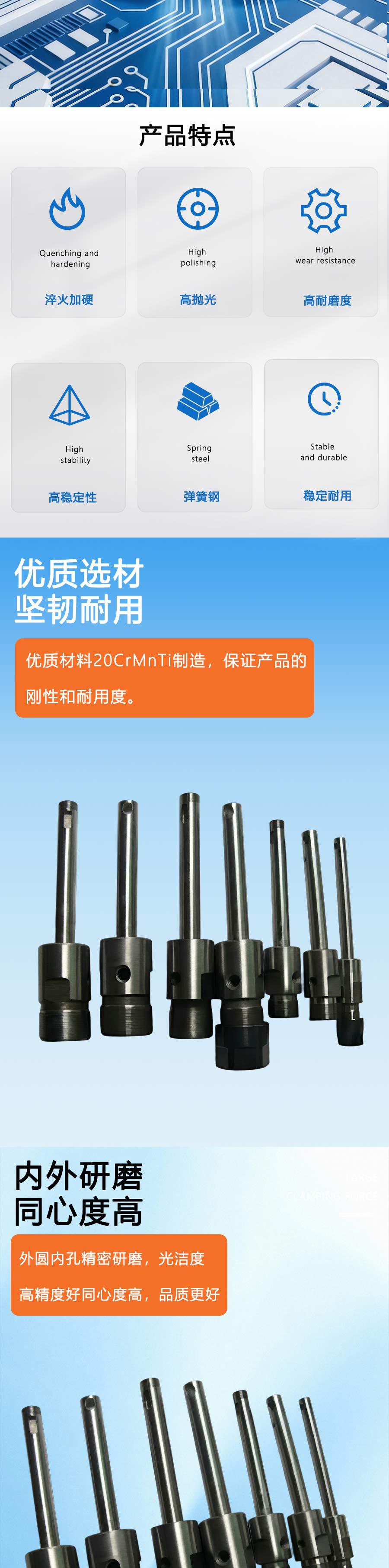 厂家供应攻牙机轴心ER芯轴多轴器配件输出轴心浮动攻丝机轴心轴承