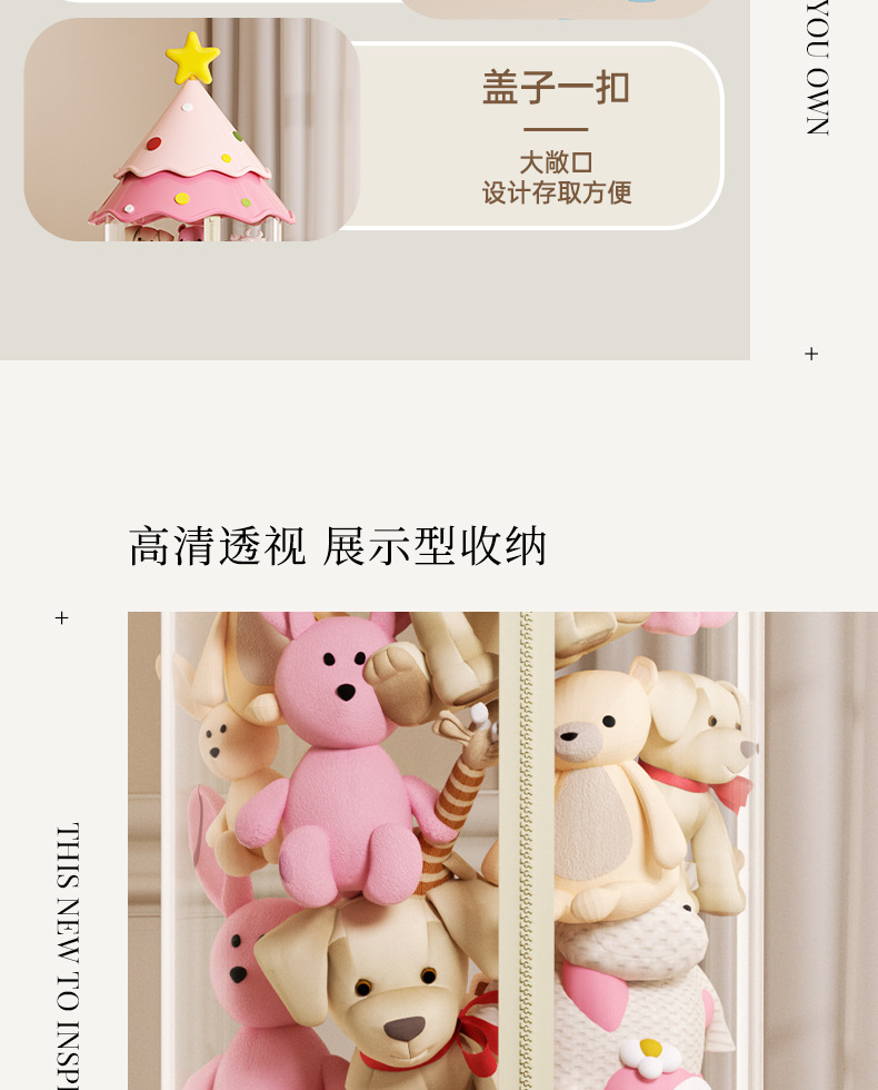 工厂直销新升级娃娃收纳桶高颜值家用公仔玩偶整理毛绒玩具防尘筒
