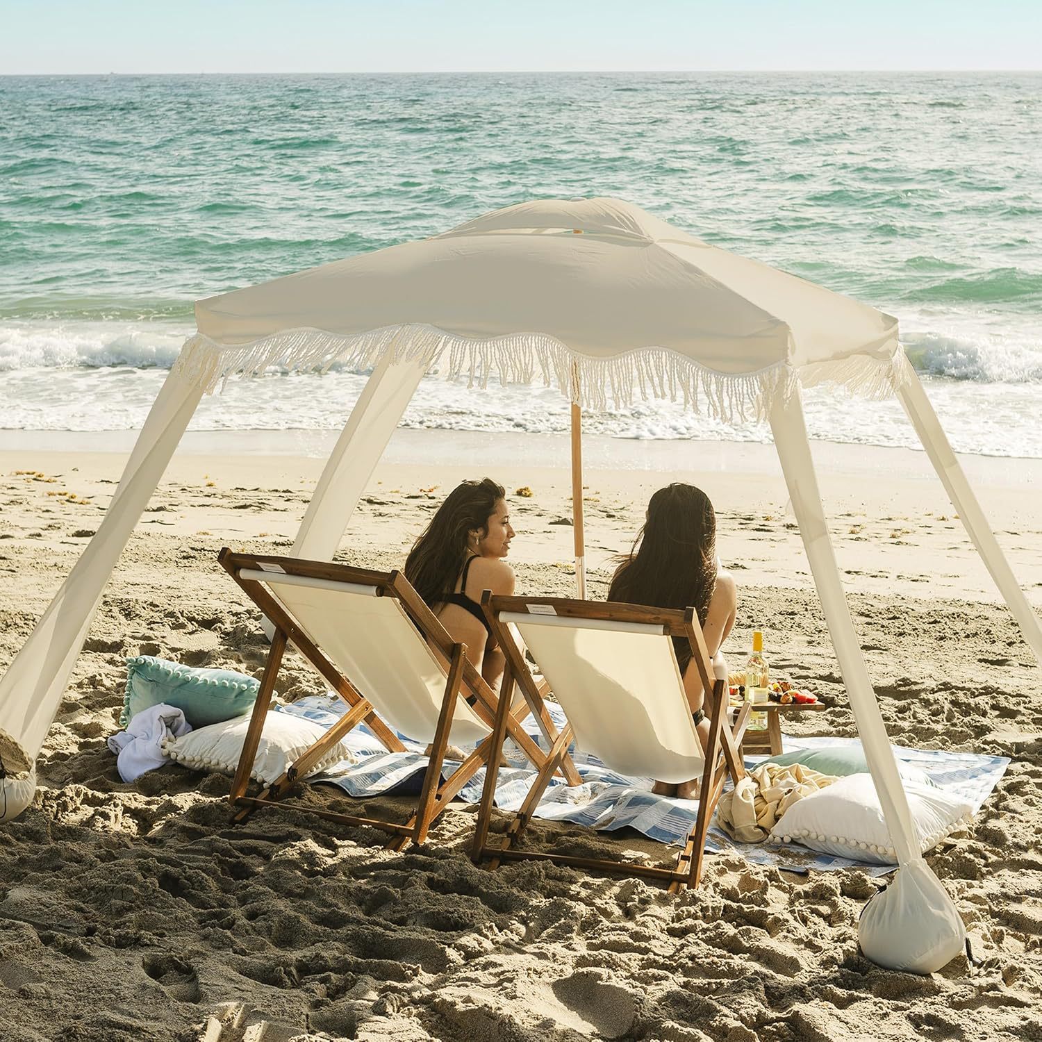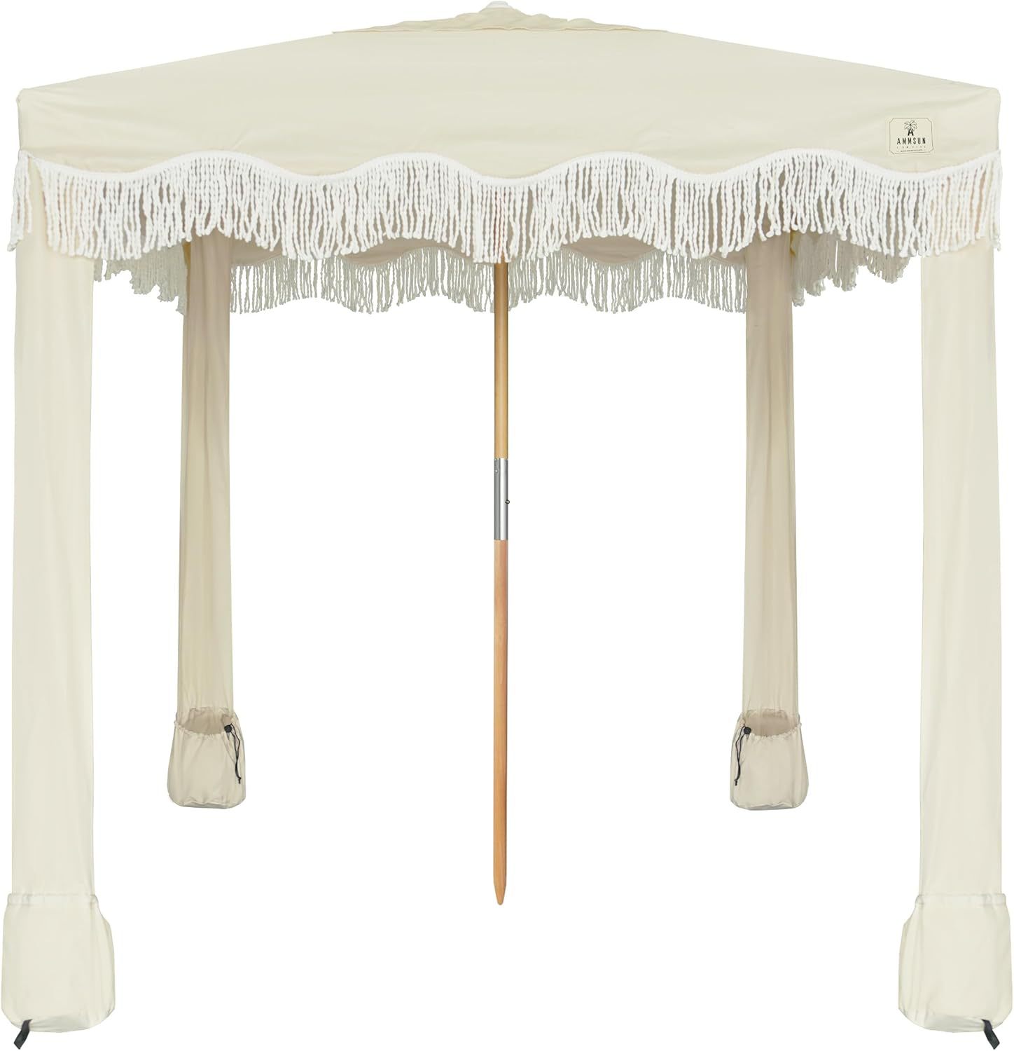 2米澳洲海边露营帐篷伞榉木中杆四方带流苏遮阳沙滩伞户外防晒