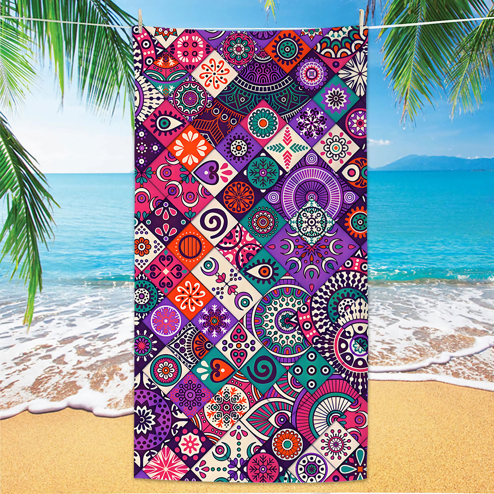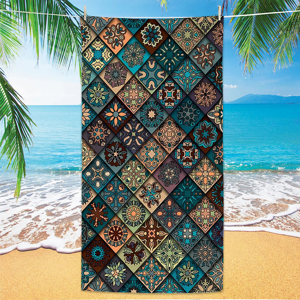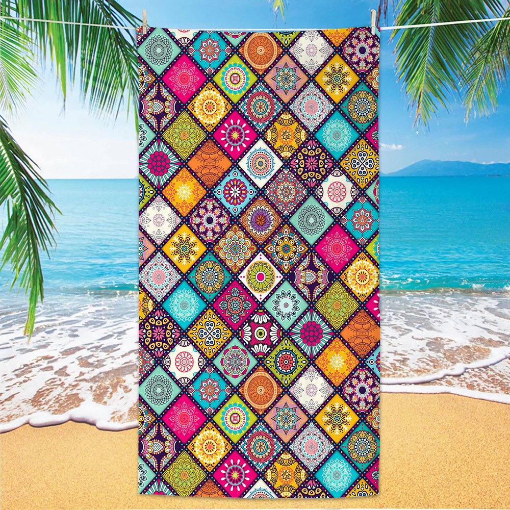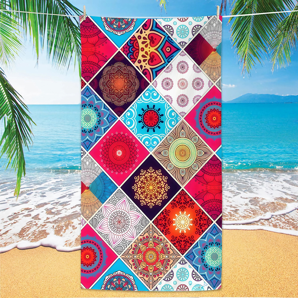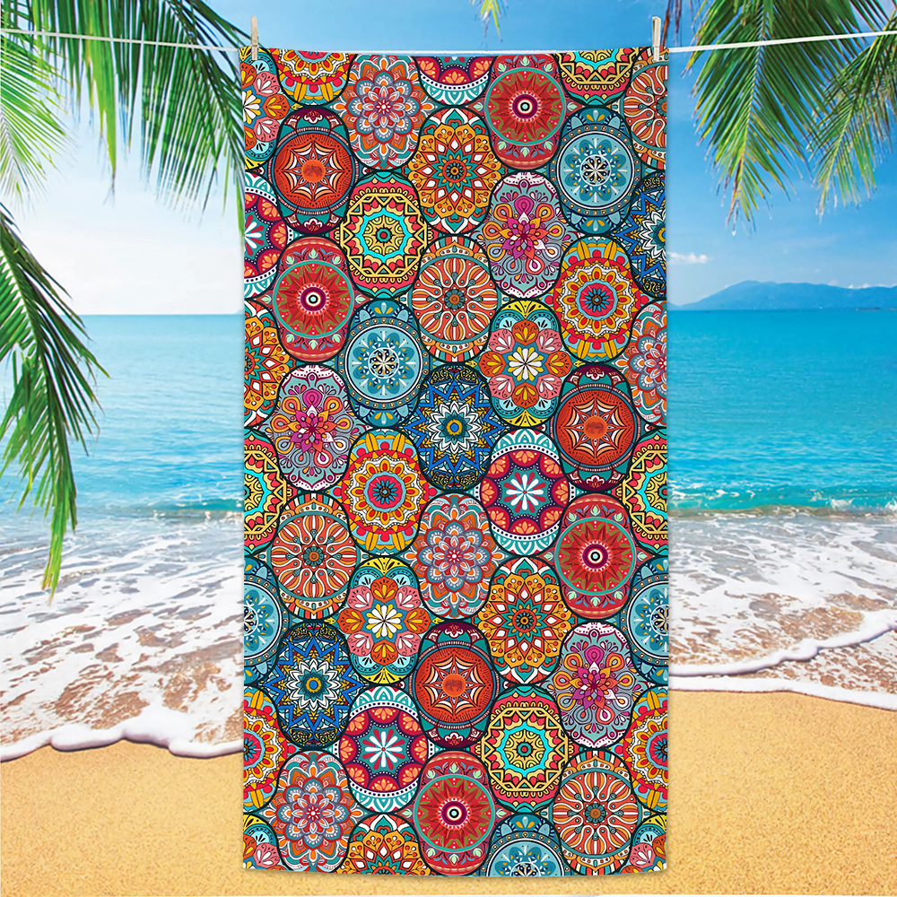 jit跨境数码印花沙滩巾沙滩浴巾速干毛巾代发超细纤维曼陀罗