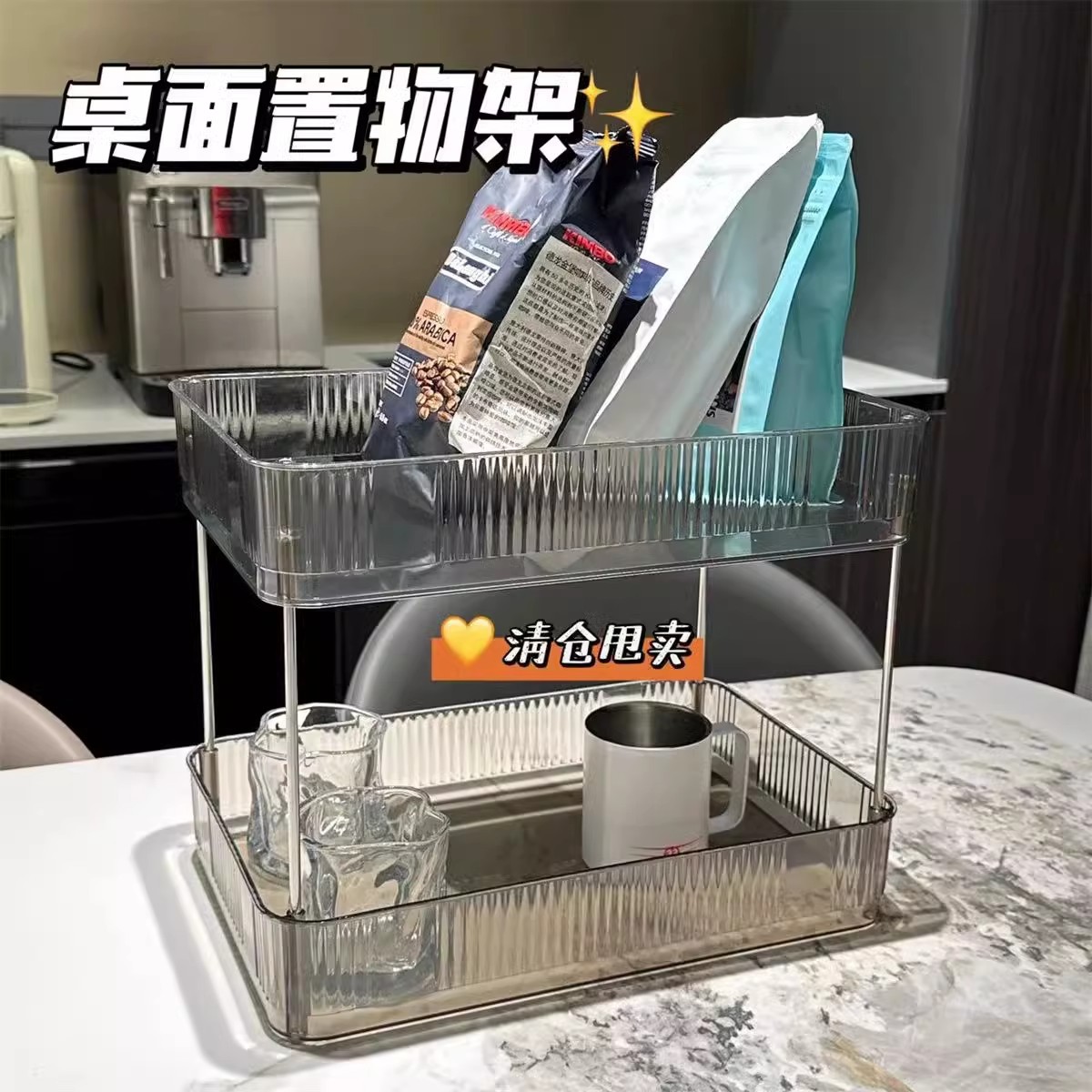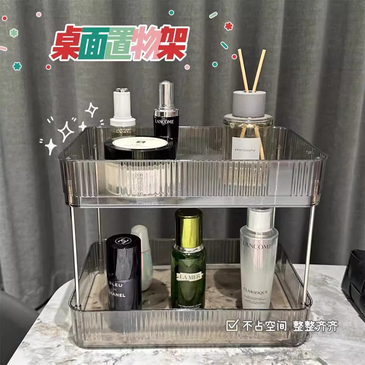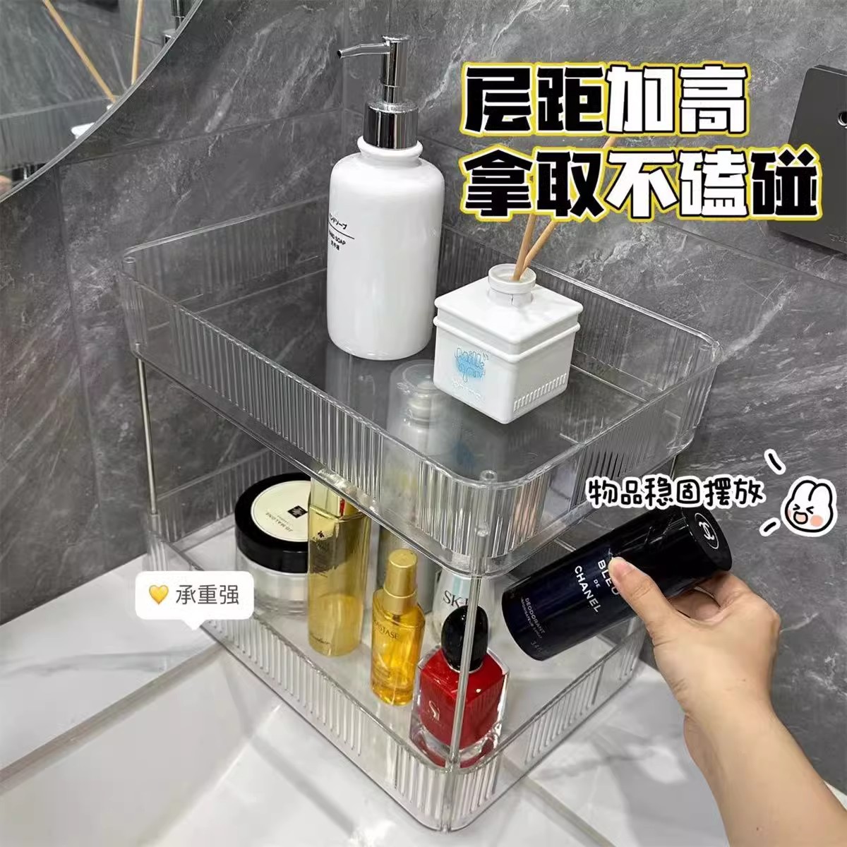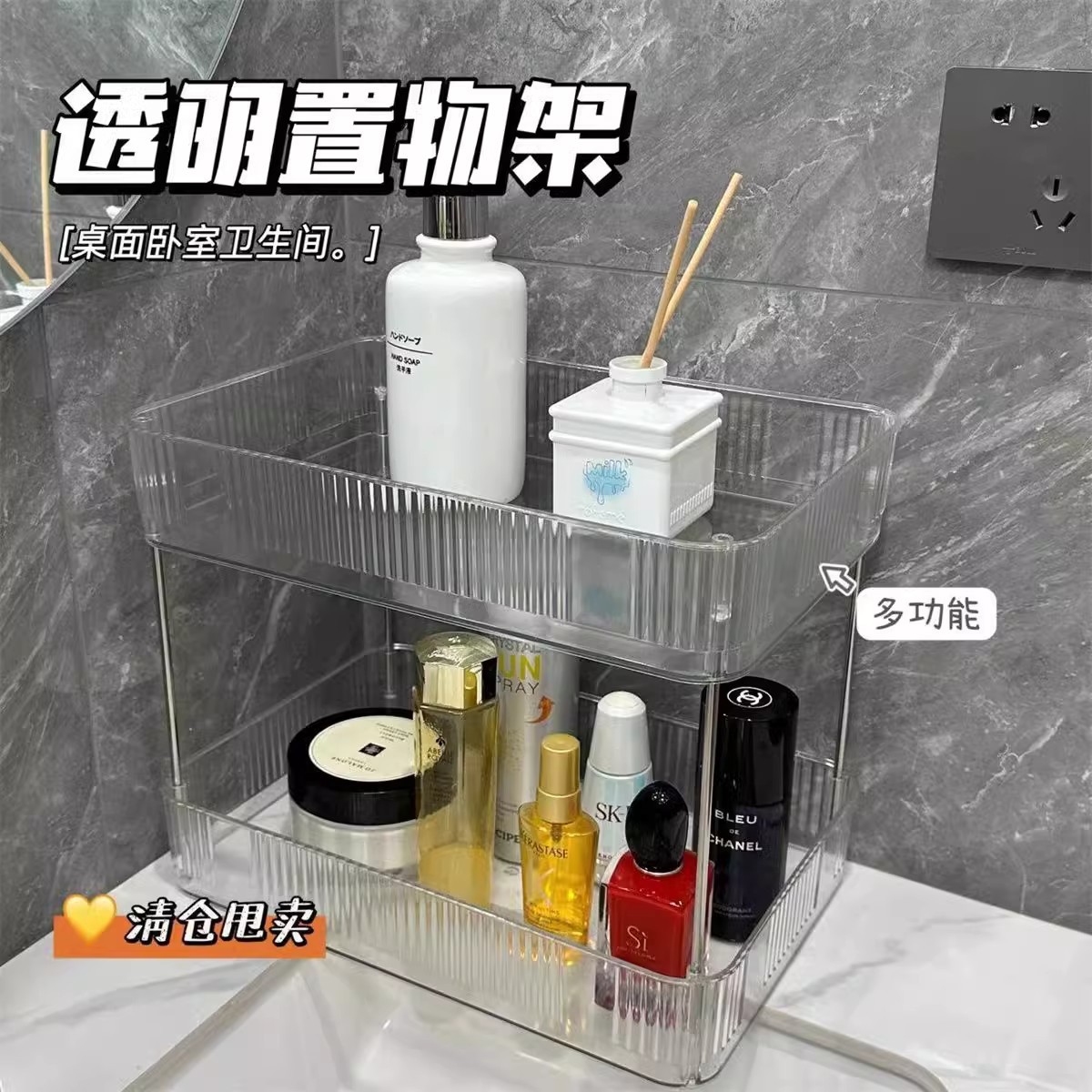 透明置物架多层化妆品杂物收纳盒杯架梳妆台收纳盒浴室角架置物架
