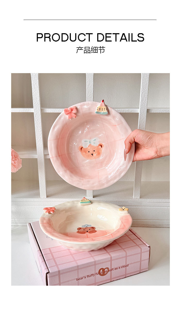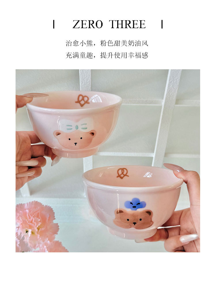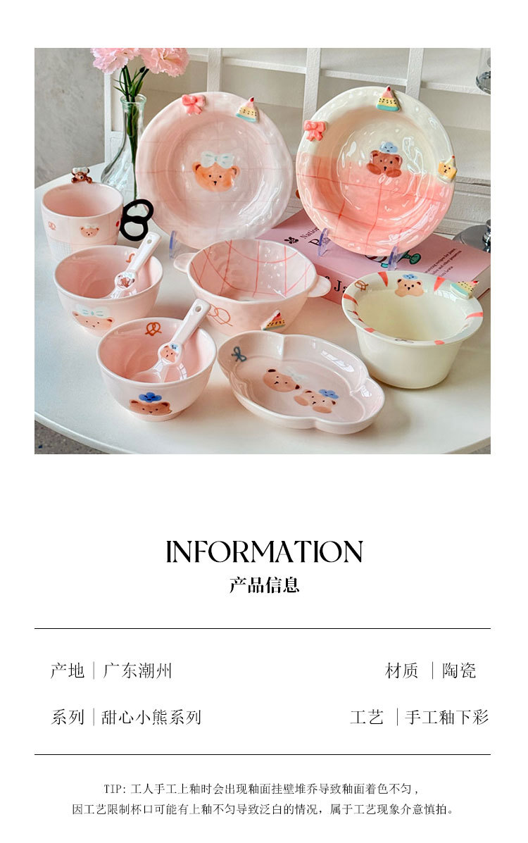 釉下彩甜心小熊陶瓷餐具套装手绘粉色少女心陶瓷餐具可爱立体碗盘,批发价,价格:6.2,厂家直销,釉下彩甜心小熊陶瓷餐具套装手绘粉色少女心陶瓷餐具可爱立体碗盘,免费拿样。