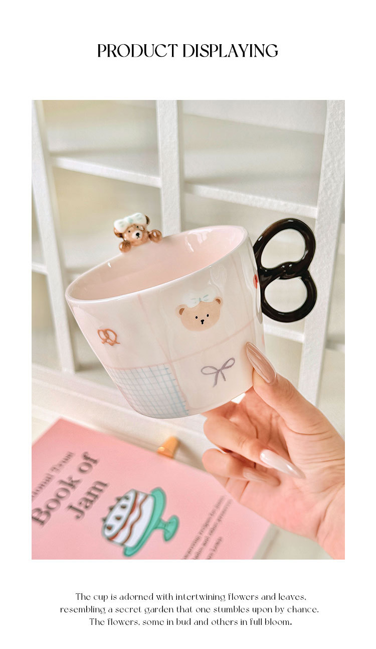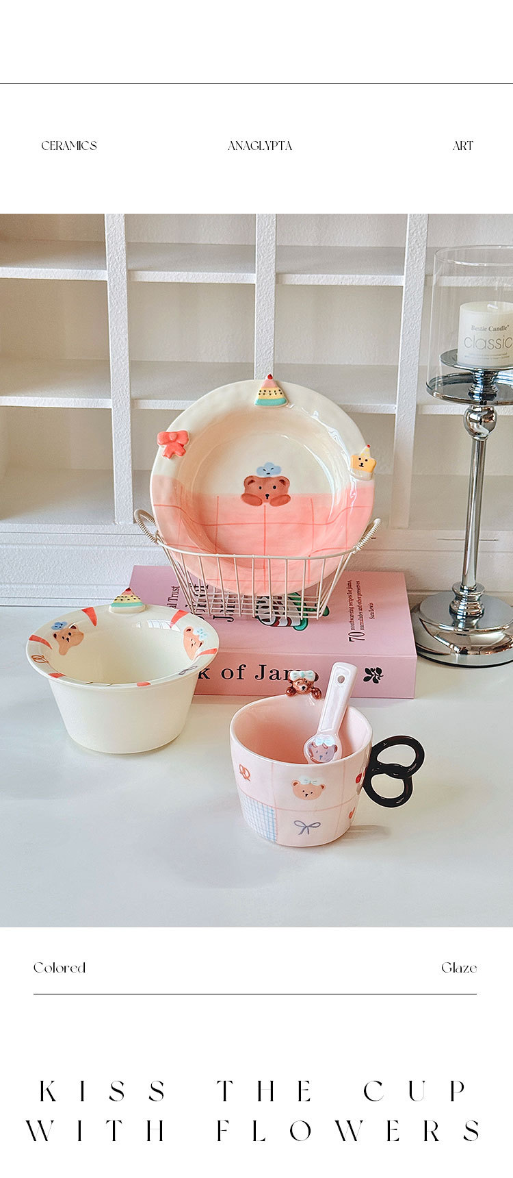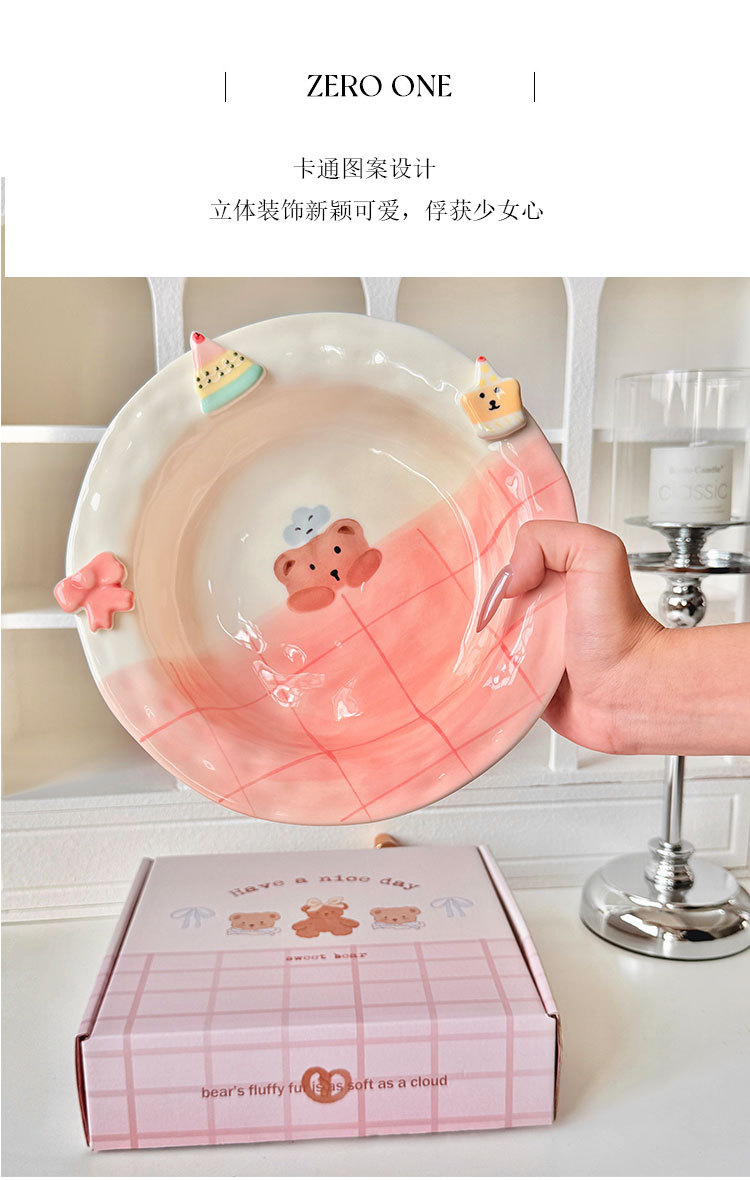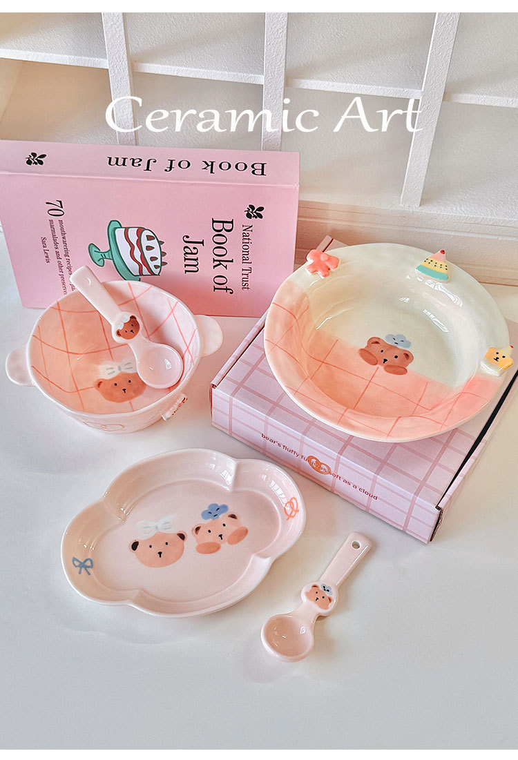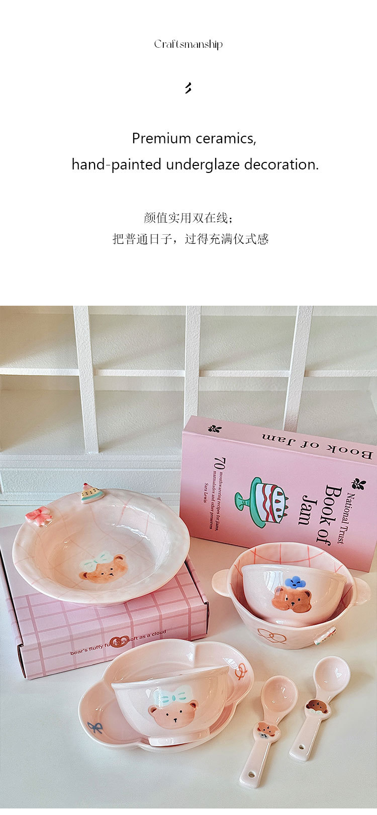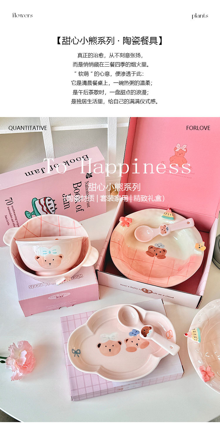 釉下彩甜心小熊陶瓷餐具套装手绘粉色少女心陶瓷餐具可爱立体碗盘