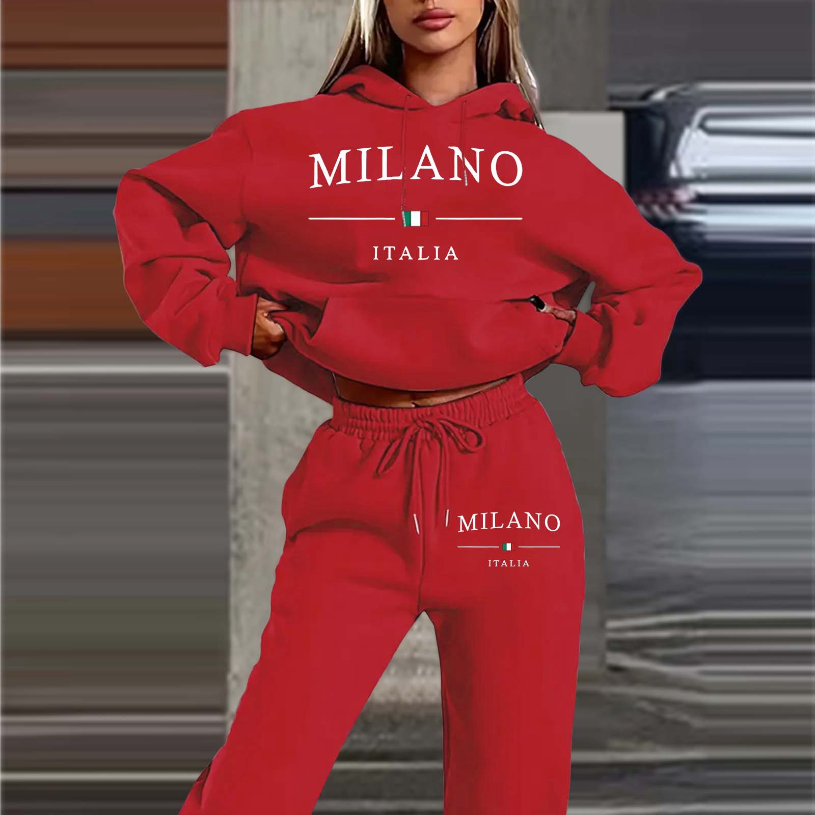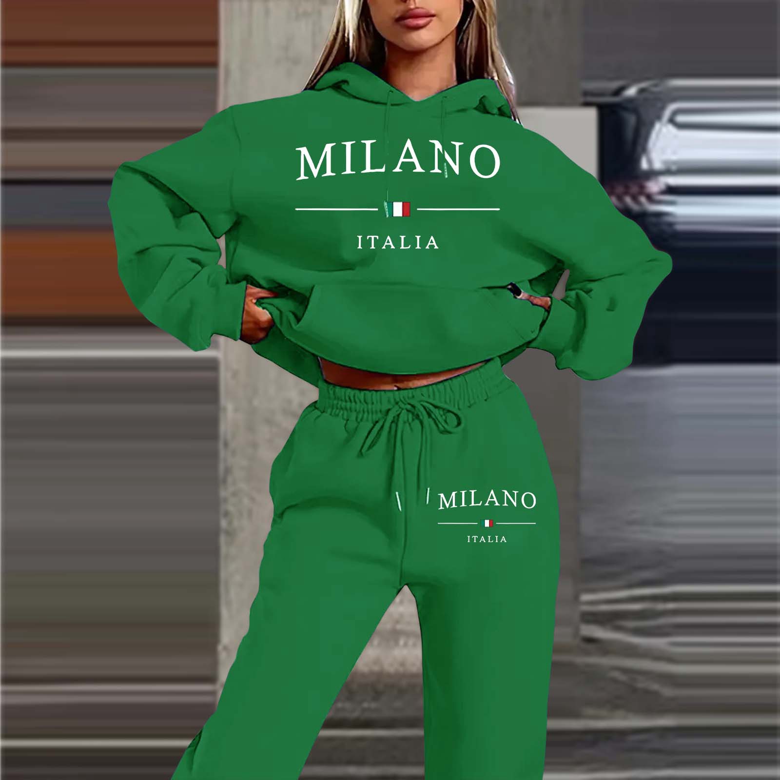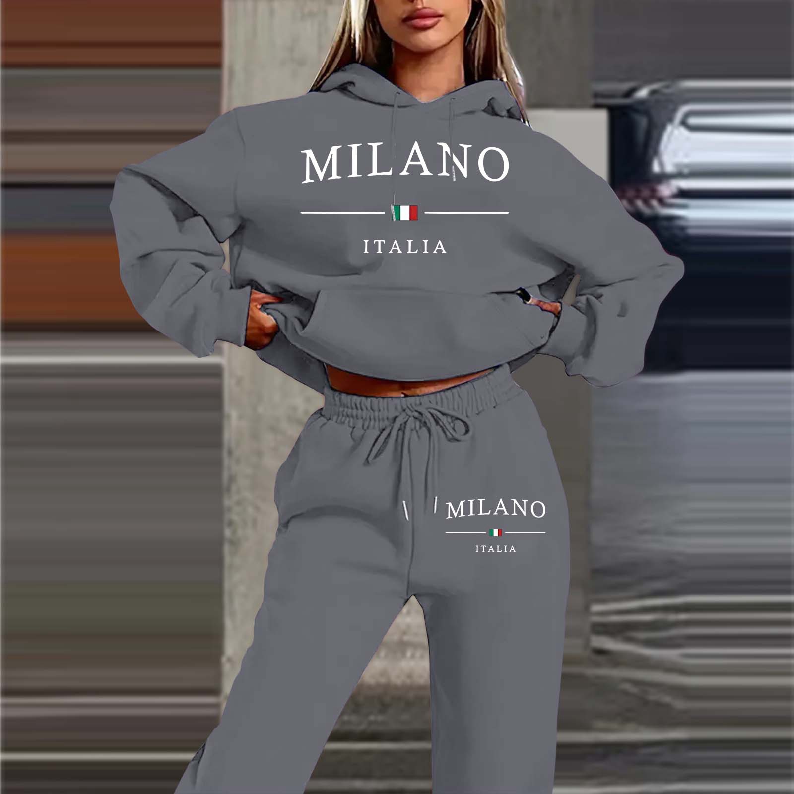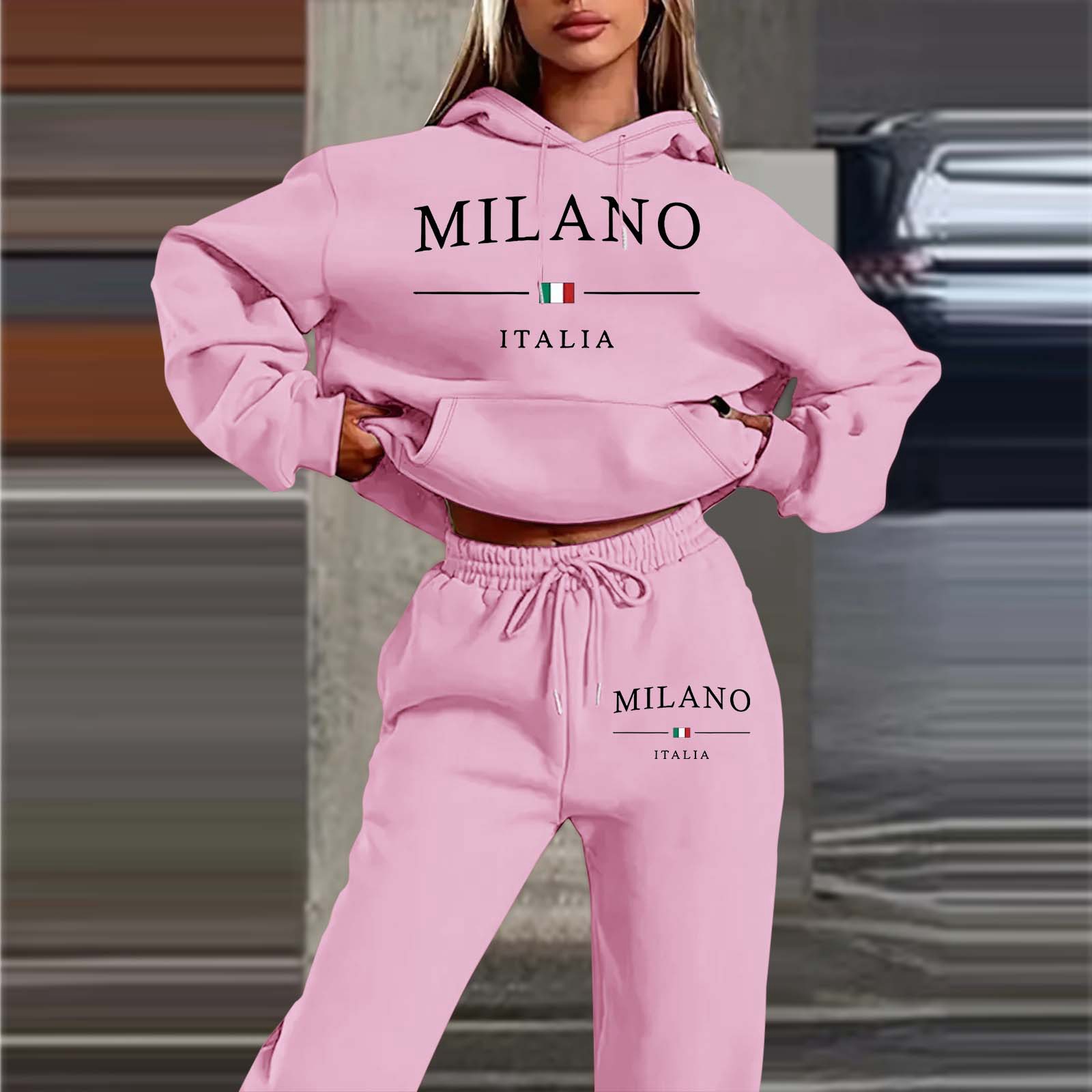 MILANO 欧美潮流大码加绒卫衣套装新款时尚印花字母女装卫衣套装