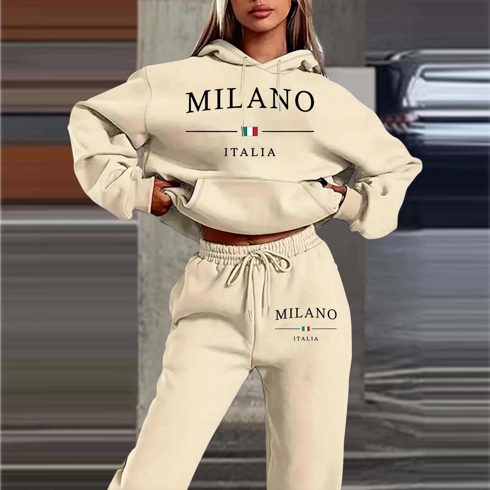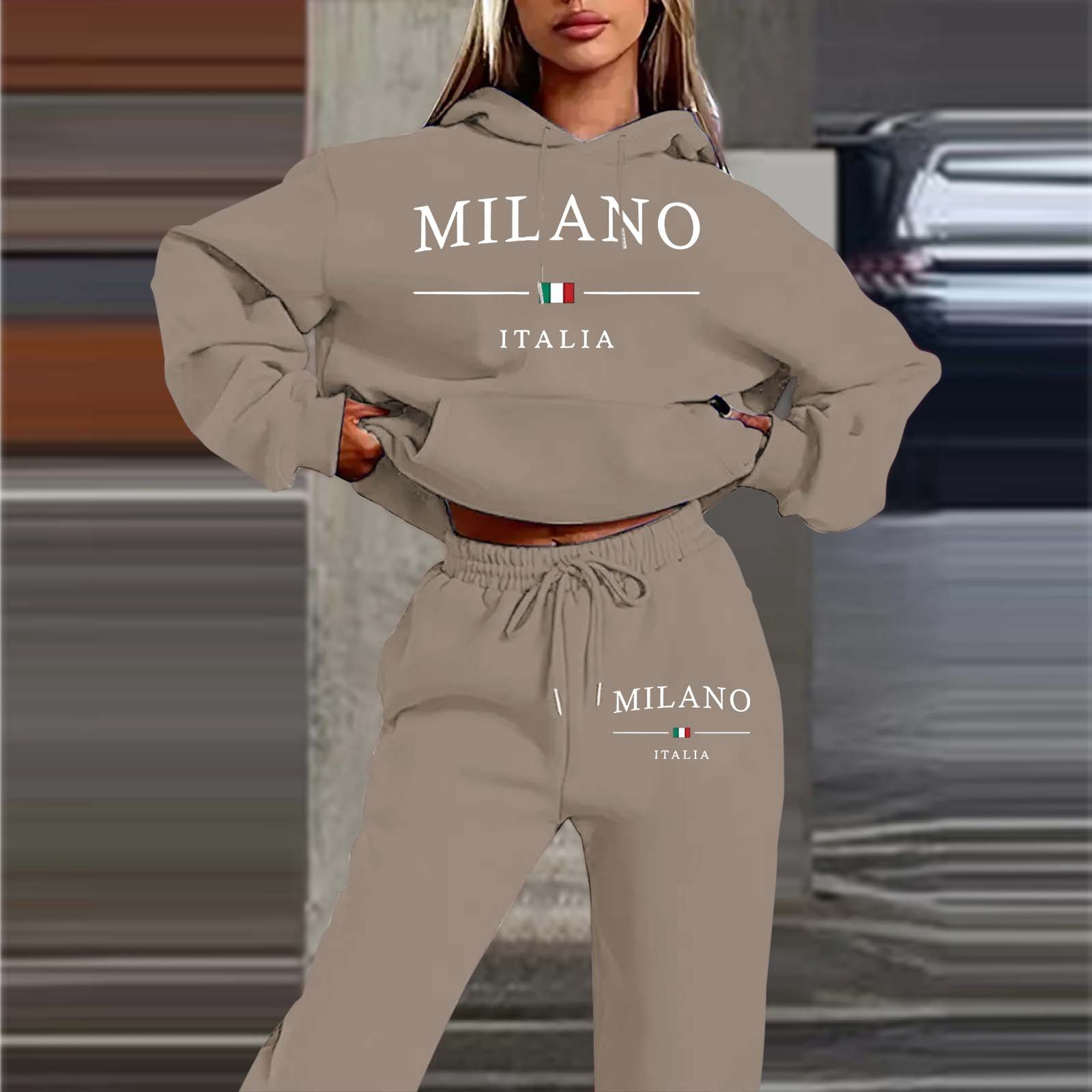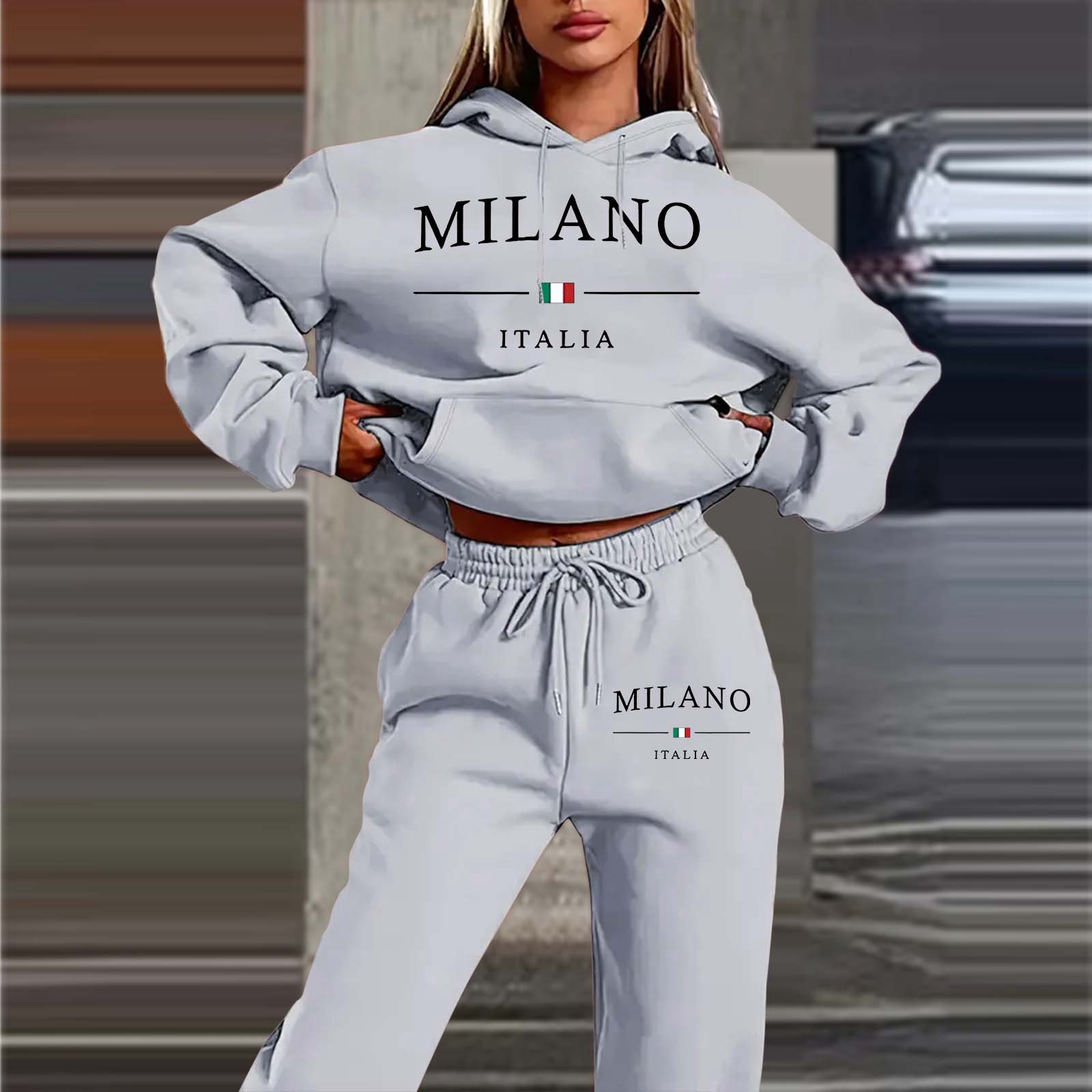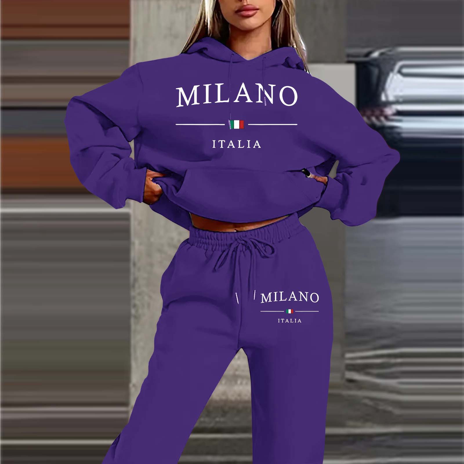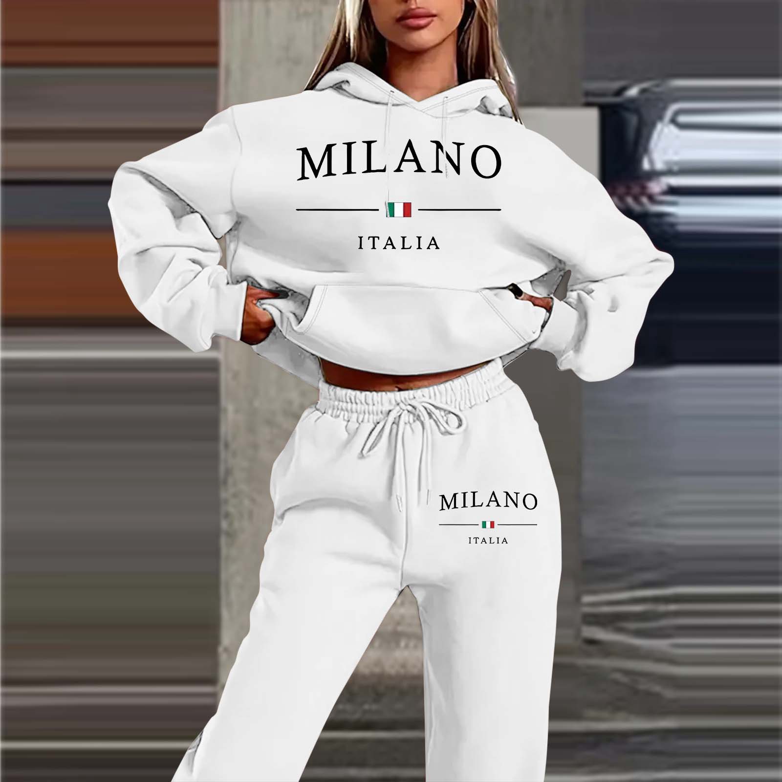 MILANO 欧美潮流大码加绒卫衣套装新款时尚印花字母女装卫衣套装