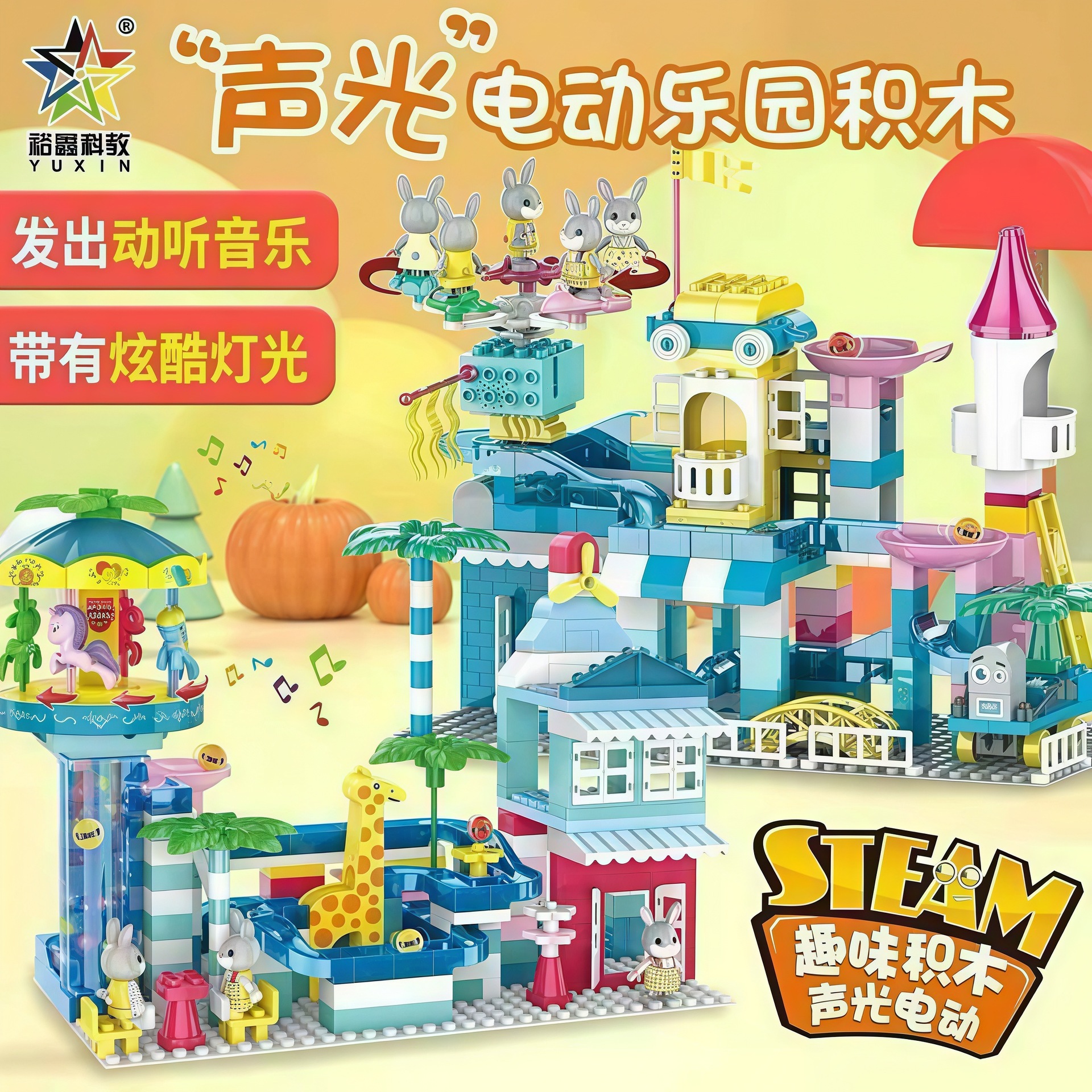 儿童益智多功能拼装积木桌玩具哄娃早教声光电动过家家跳舞驴玩具