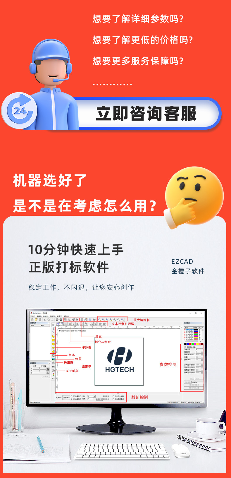 华工激光小型便携式光纤激光打标机金属logo雕刻分体式桌面打标机