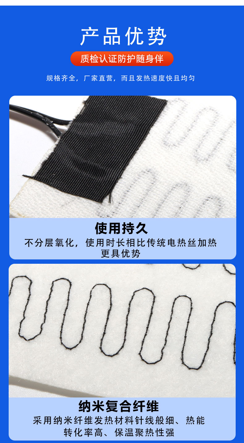 工厂冬季发热鞋垫加热片全脚掌发热片USB鞋垫电热片 无纺布发热片