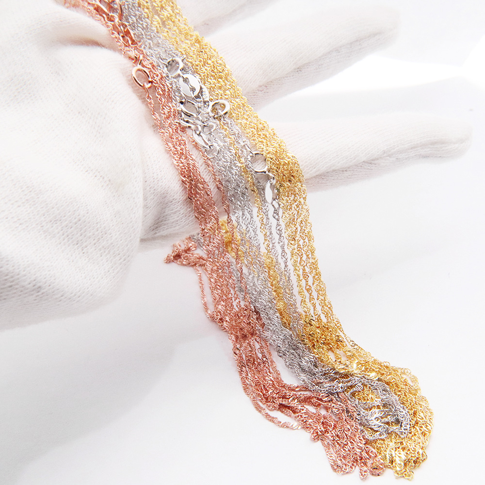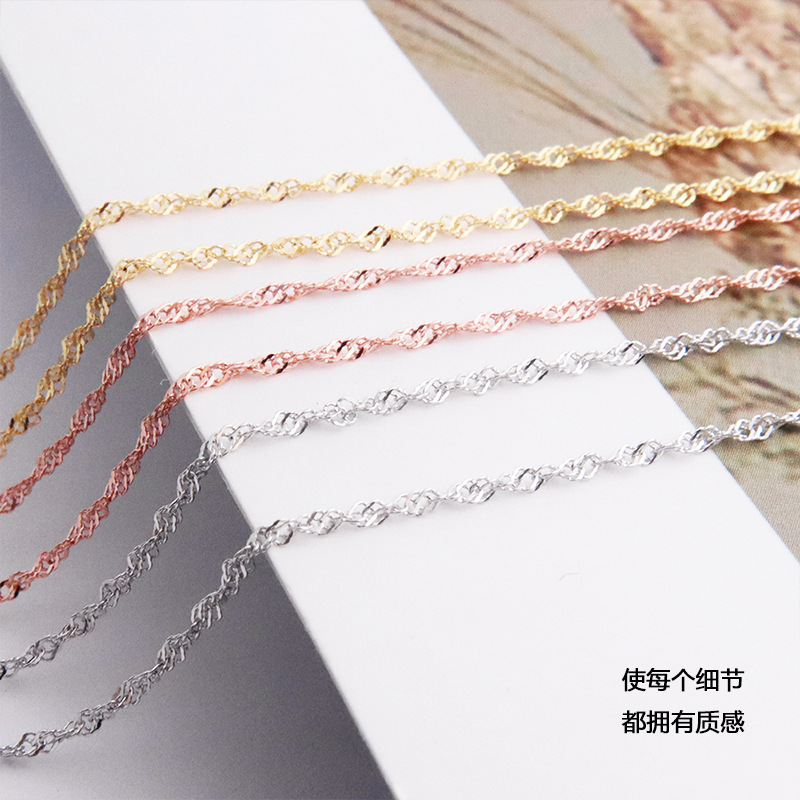 s925纯银项链女款 水波纹锁骨链 韩版简约时尚银饰品裸链配链批发