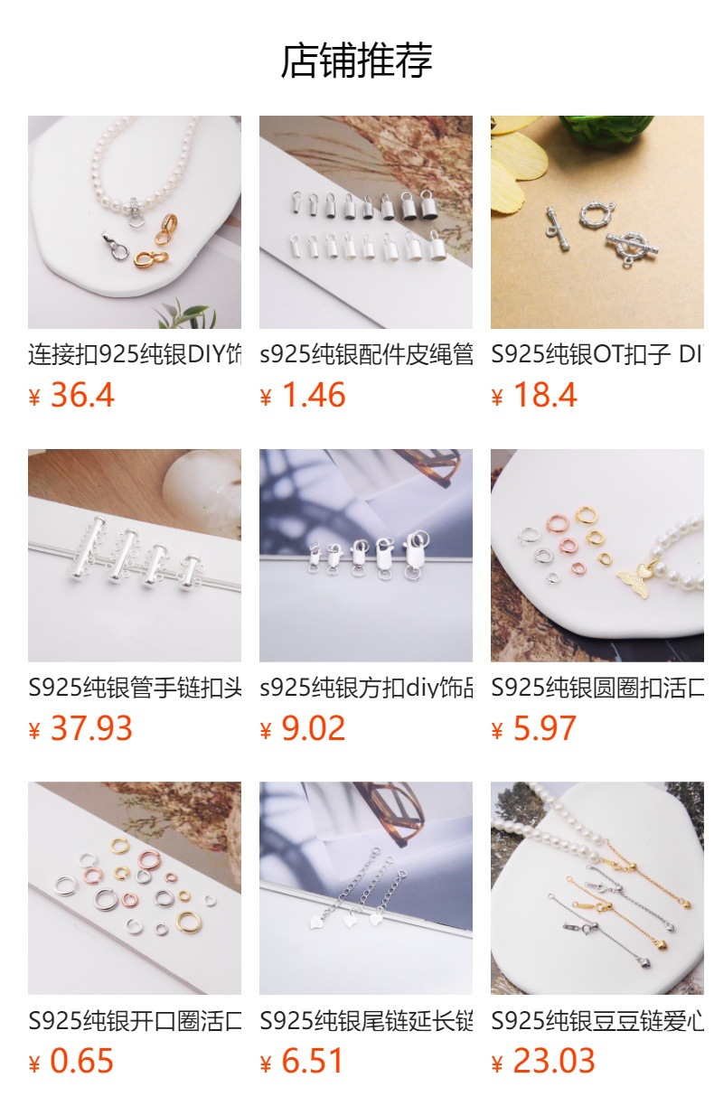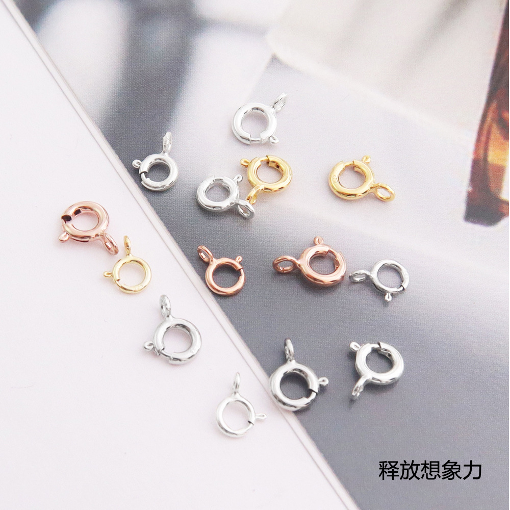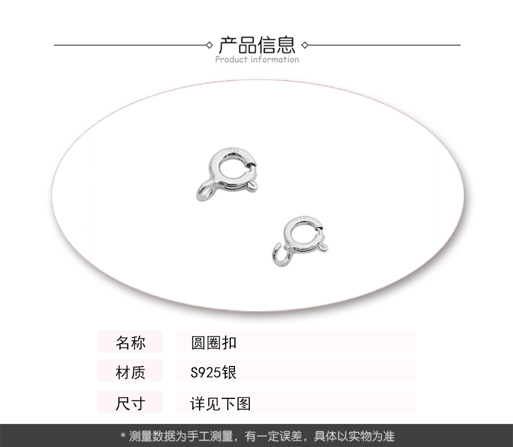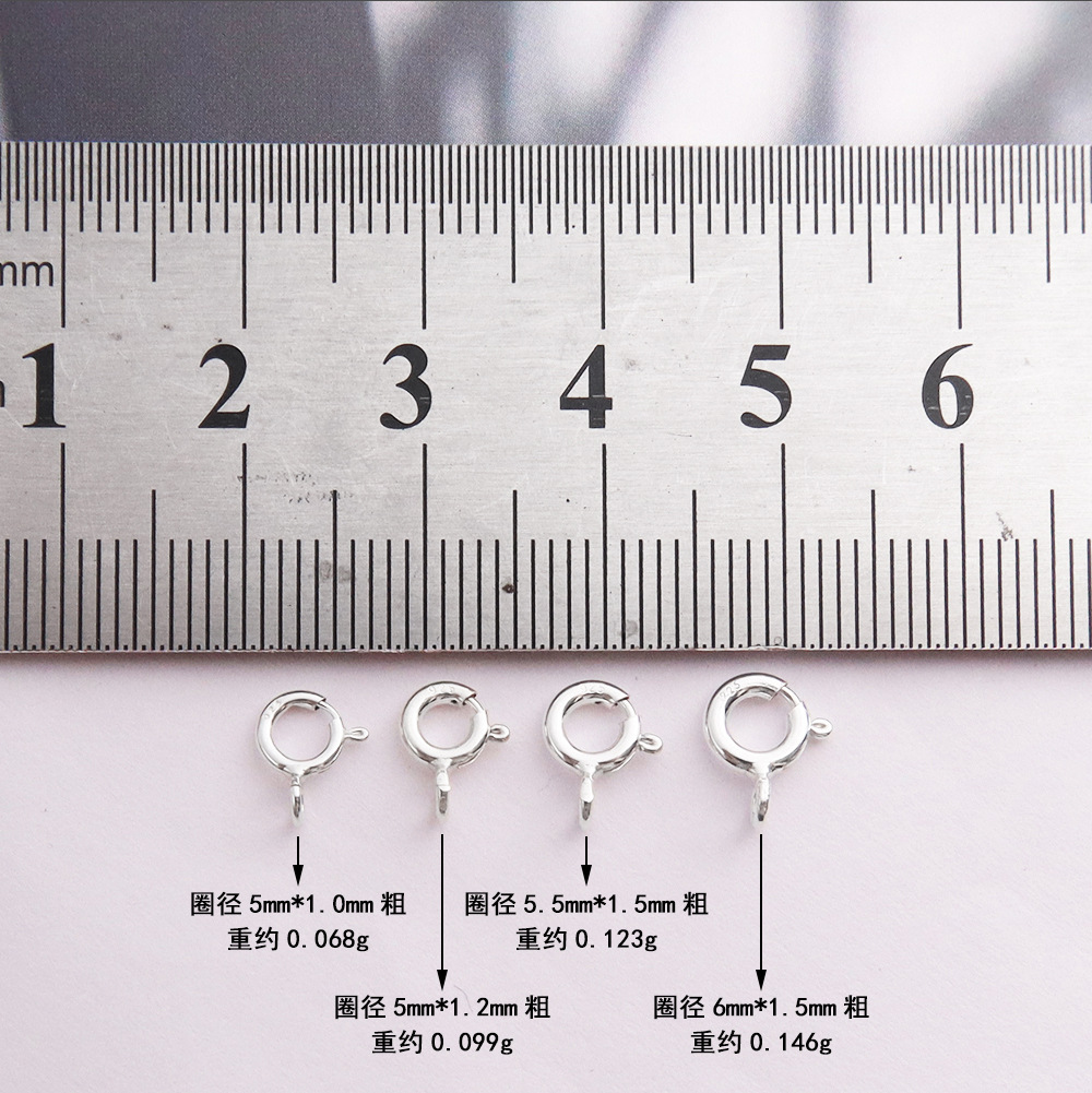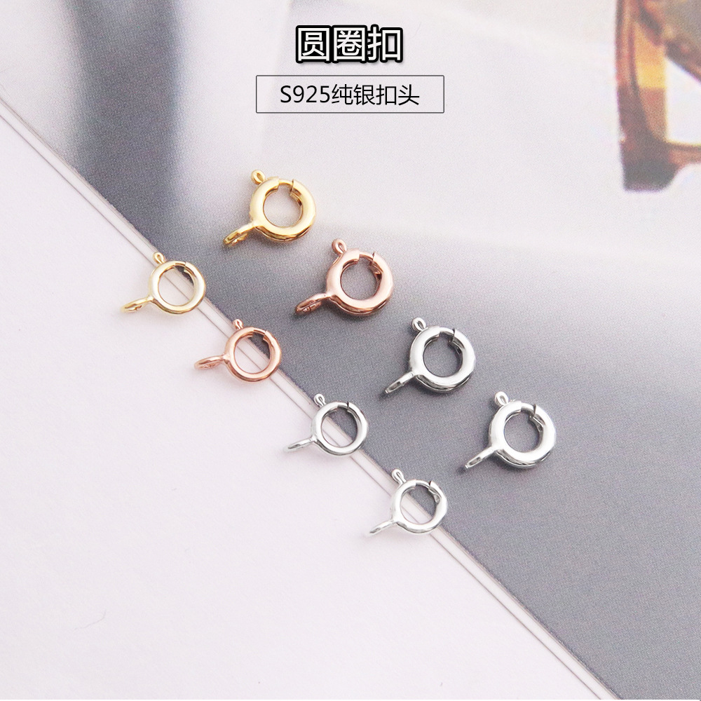s925纯银圆圈扣滴溜扣弹簧扣头配件 diy项链手链连接扣子配件批发