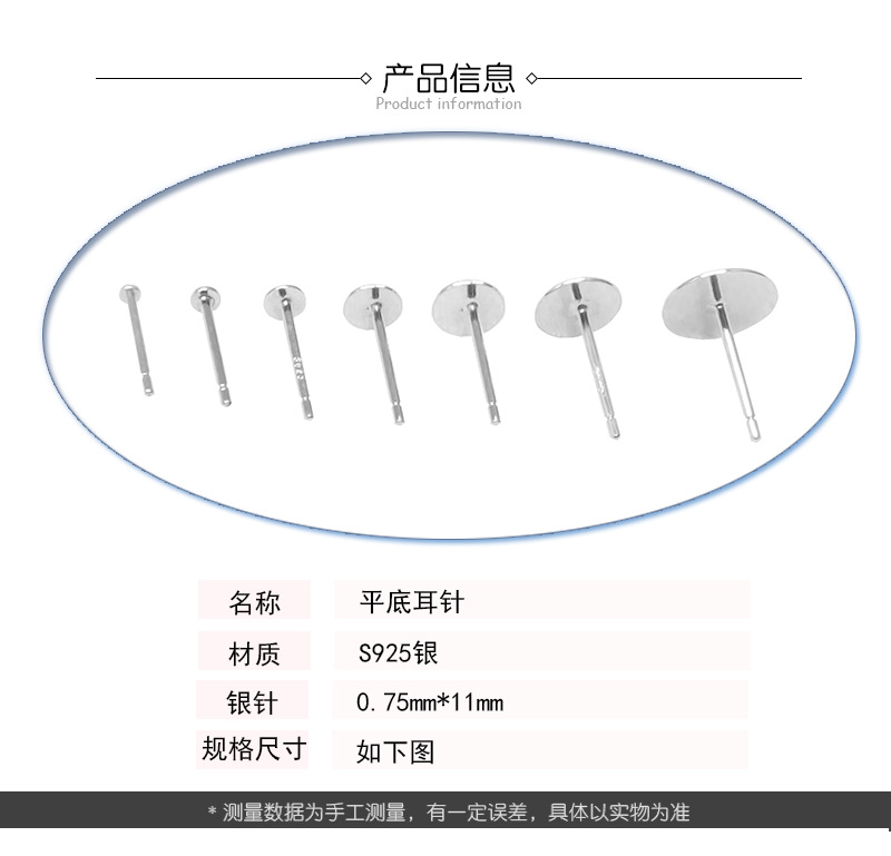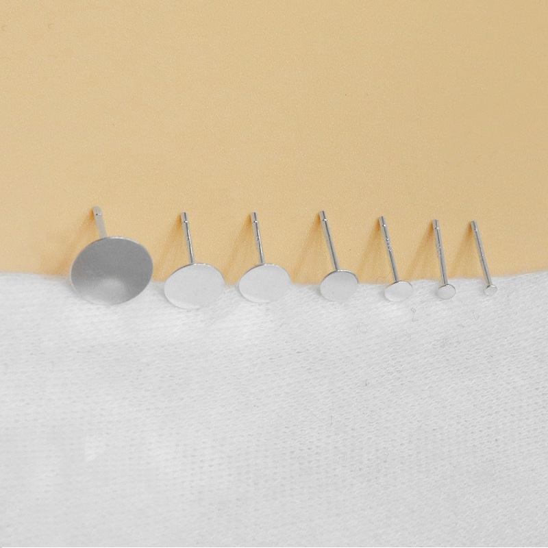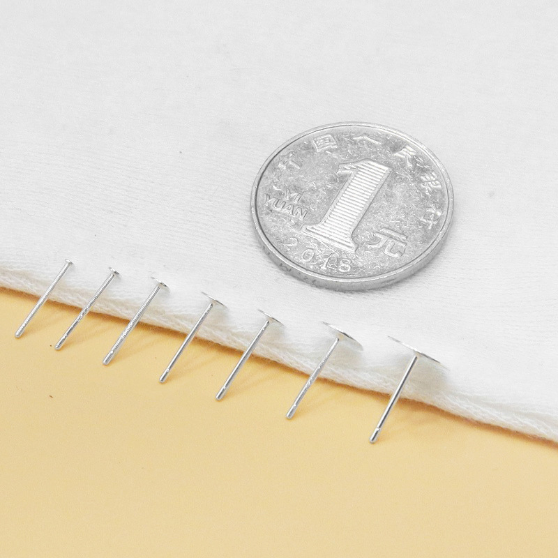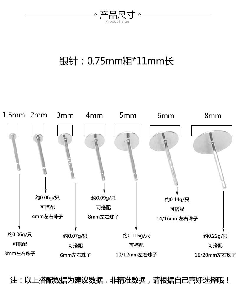 S925纯银圆头平底耳针 DIY手工耳饰品耳环配件珍珠平头耳钉平底托