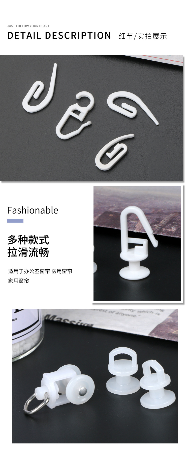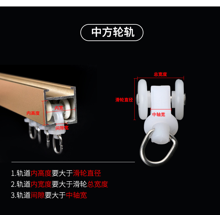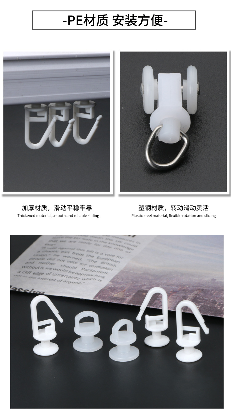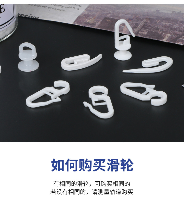 推荐理由:多系列轨道窗帘滑轮静音窗帘挂钩轨道配件卡扣纳米轮多规格批发