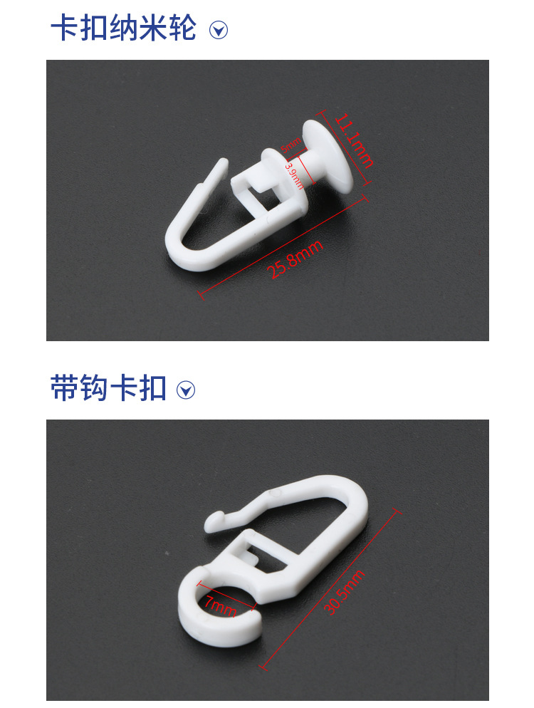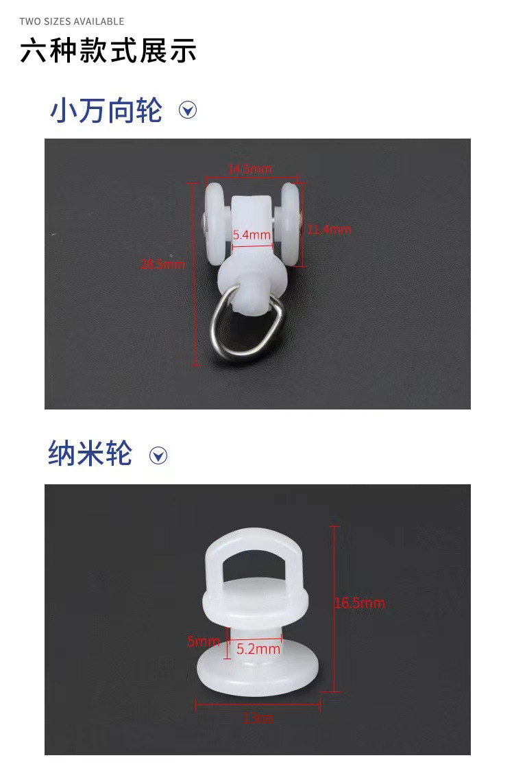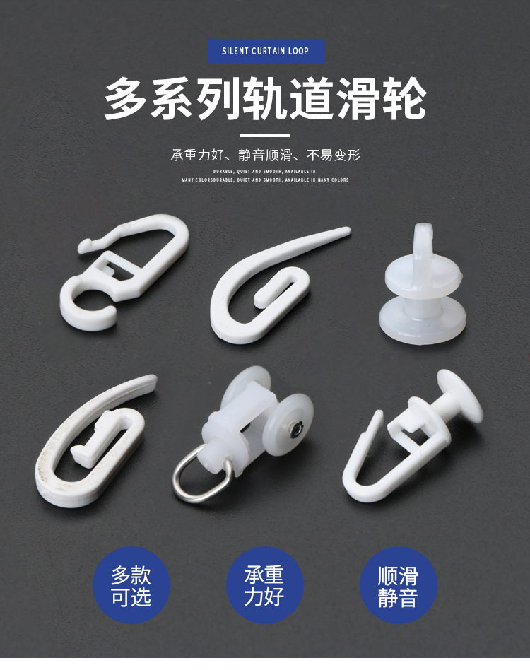 多系列轨道窗帘滑轮静音窗帘挂钩轨道配件卡扣纳米轮多规格批发,批发价,价格:0.04,厂家直销,多系列轨道窗帘滑轮静音窗帘挂钩轨道配件卡扣纳米轮多规格批发,免费拿样。