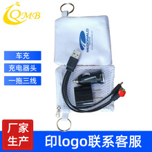 车载充电线 充电插头 绿点充电器 一拖三充电线