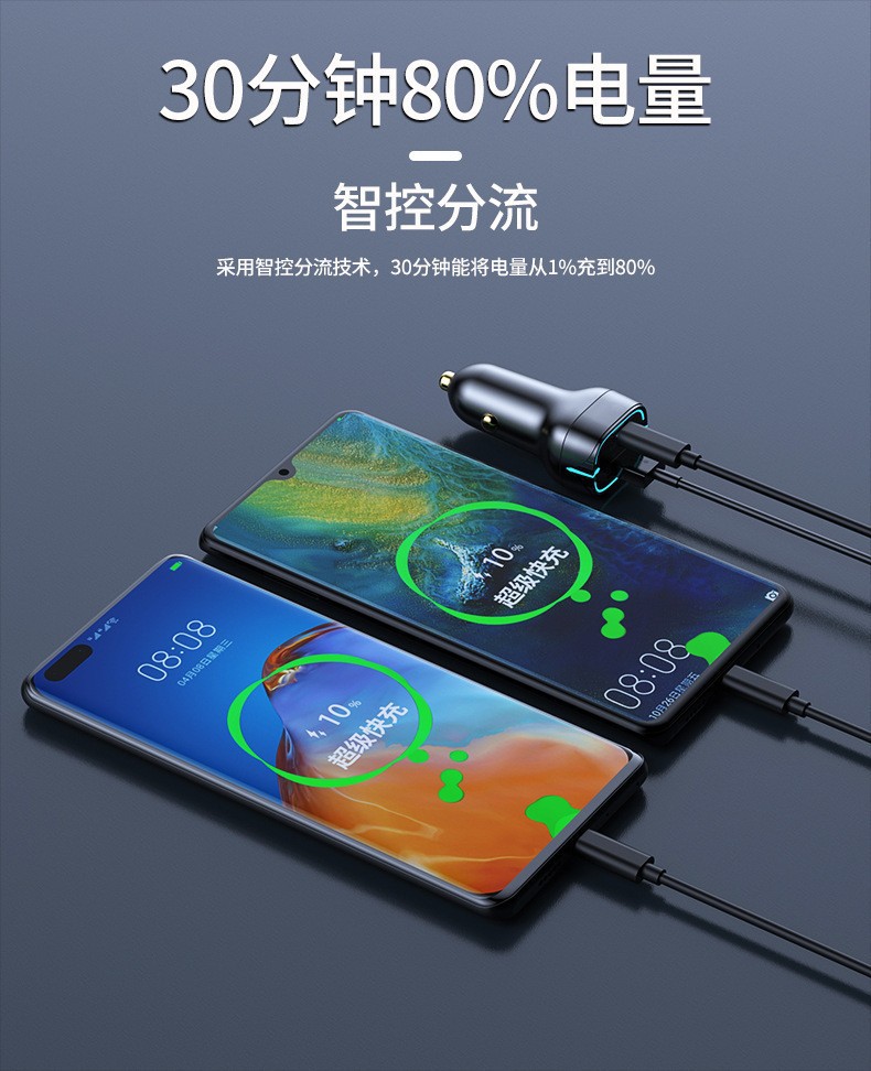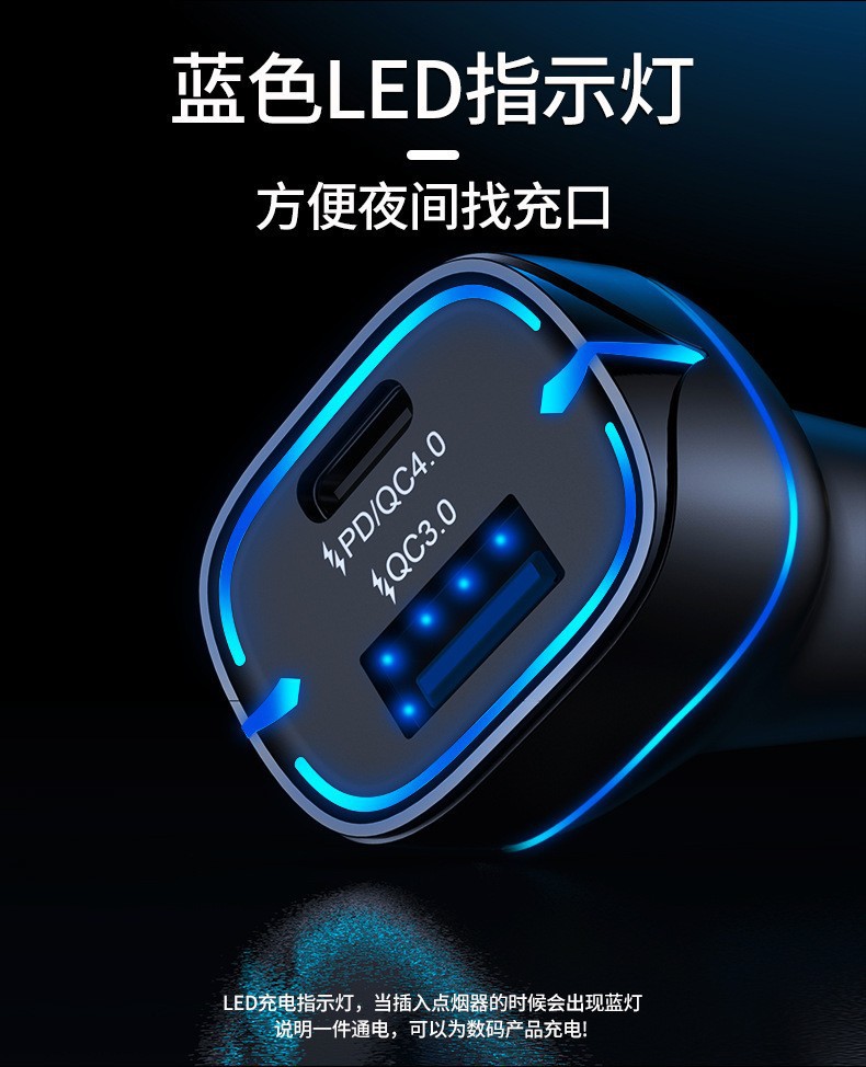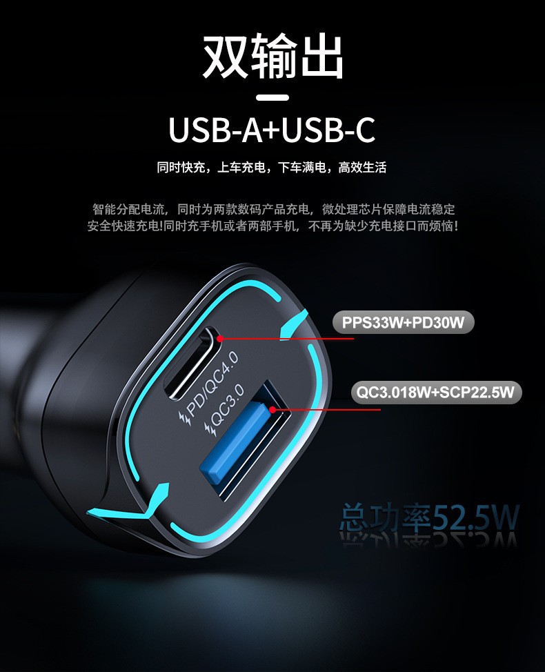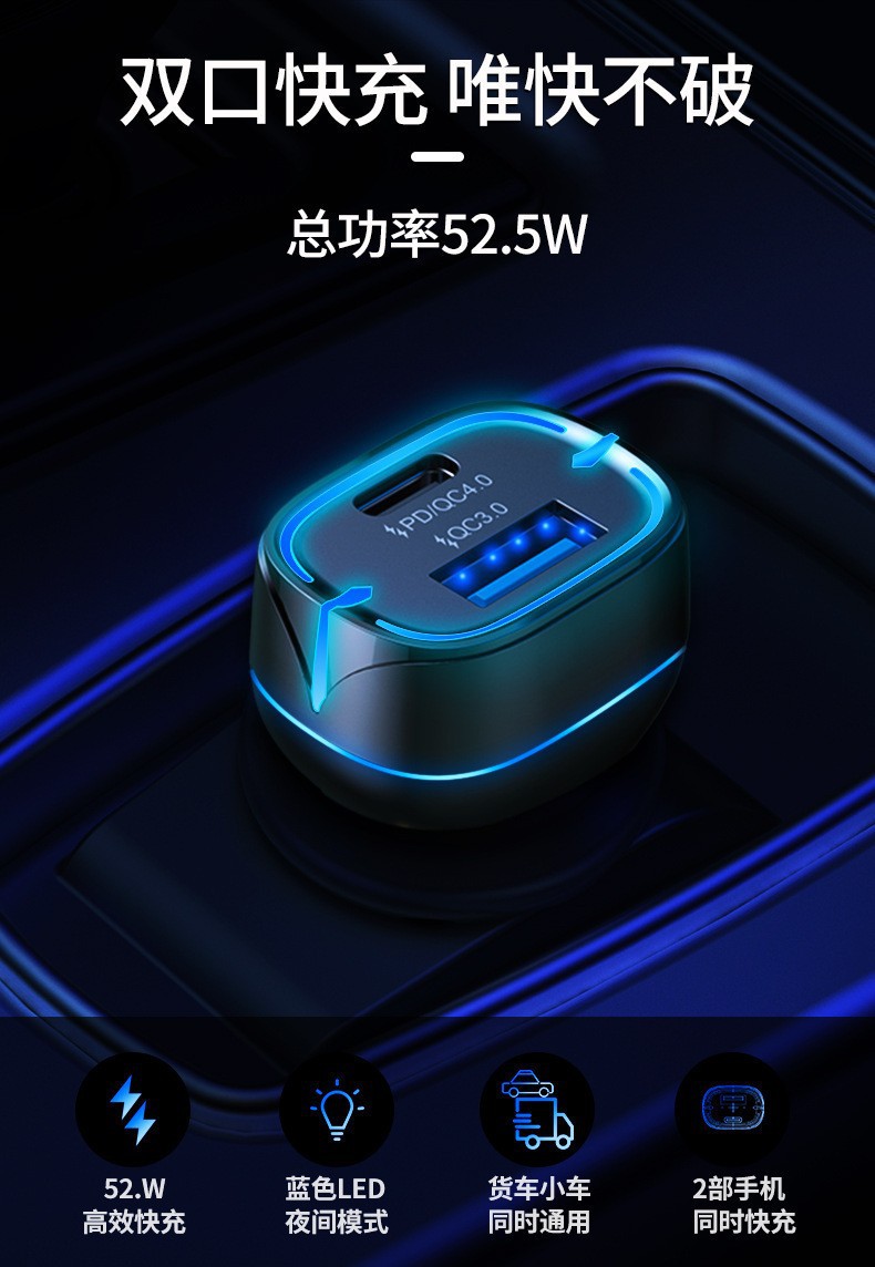 PD20W车载闪充充电器迷你快充车充52.5W大功率TypeC QC3.0/4.0