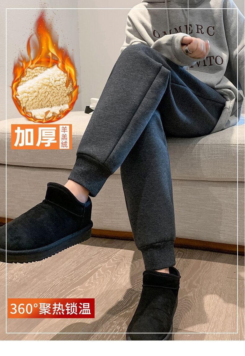 加绒运动裤女加厚外穿黑色羊羔绒卫裤子秋冬季哈伦宽松束脚休闲裤