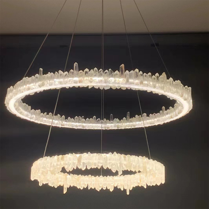 现代简约天然水晶吊灯设计师轻奢餐厅卧室别墅样板间大气客厅灯具