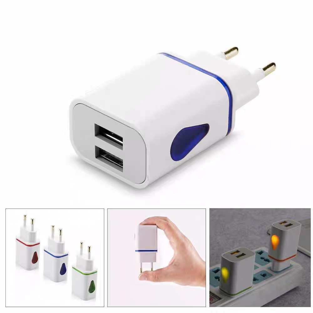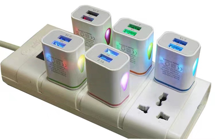 5v2.1A充电器头手机通用双usb插头快速充电带LED显示灯可定logo