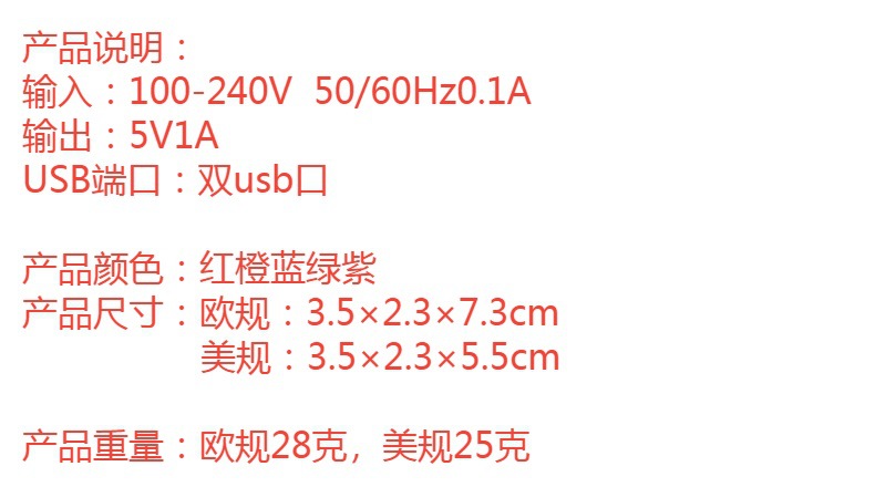 推荐理由:5v2.1A充电器头手机通用双usb插头快速充电带LED显示灯可定logo