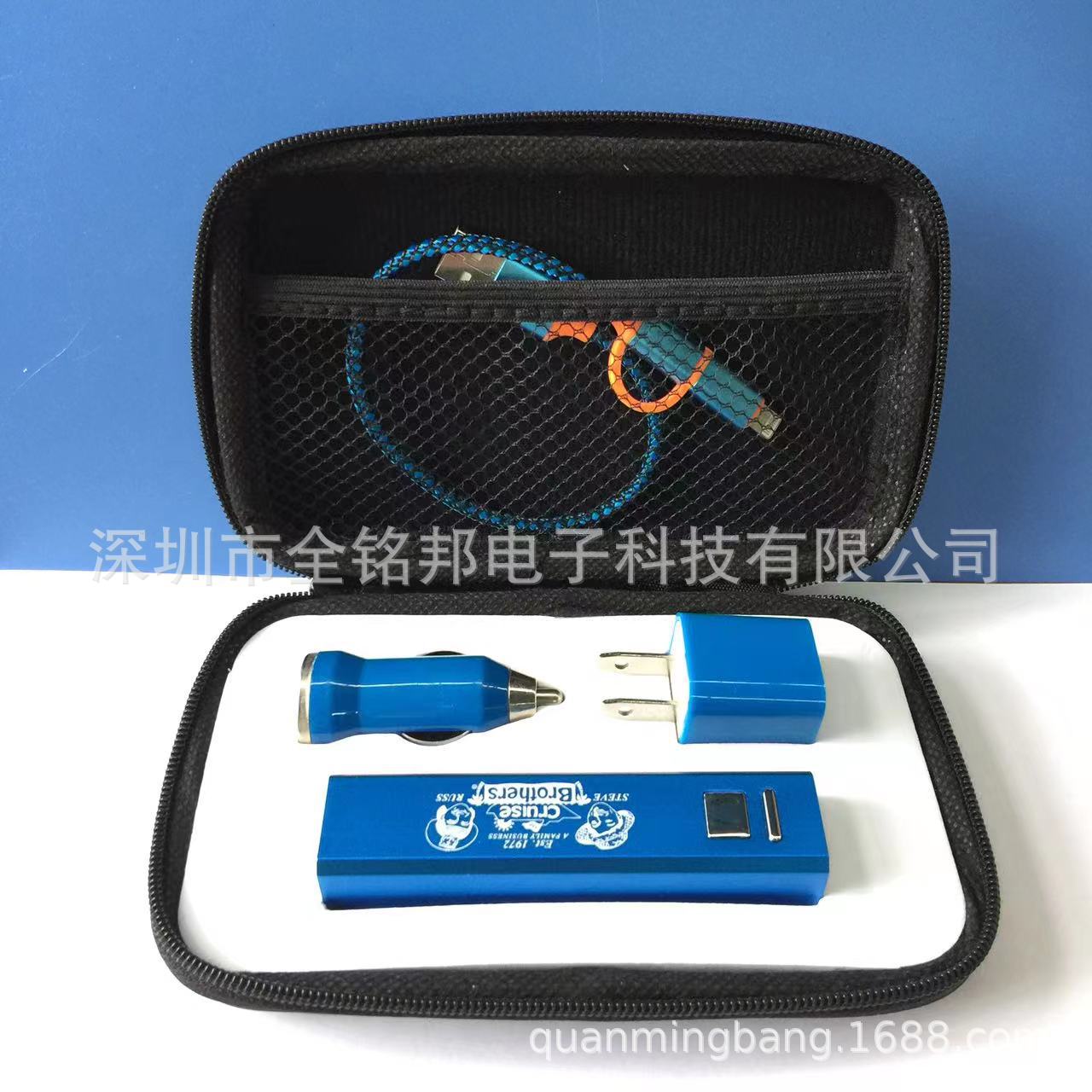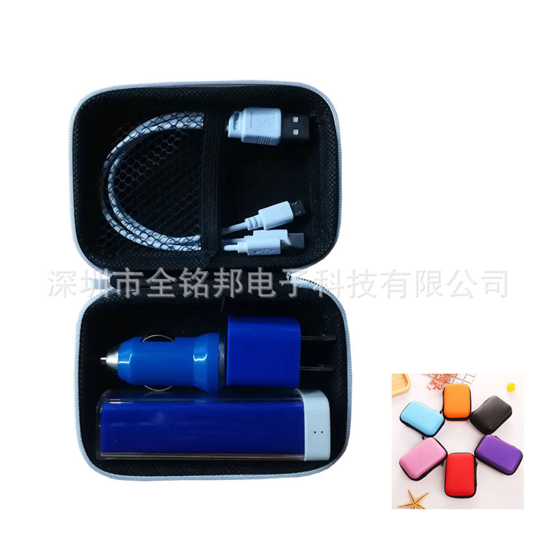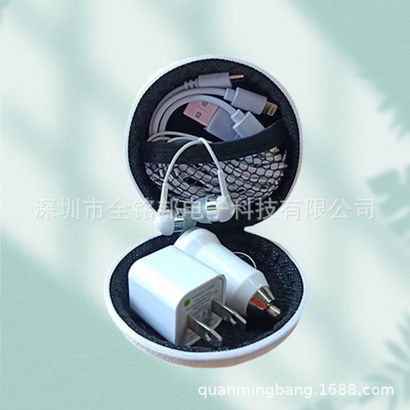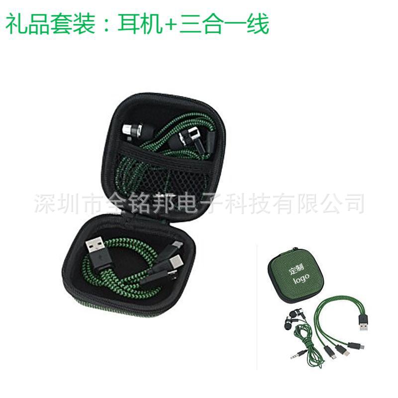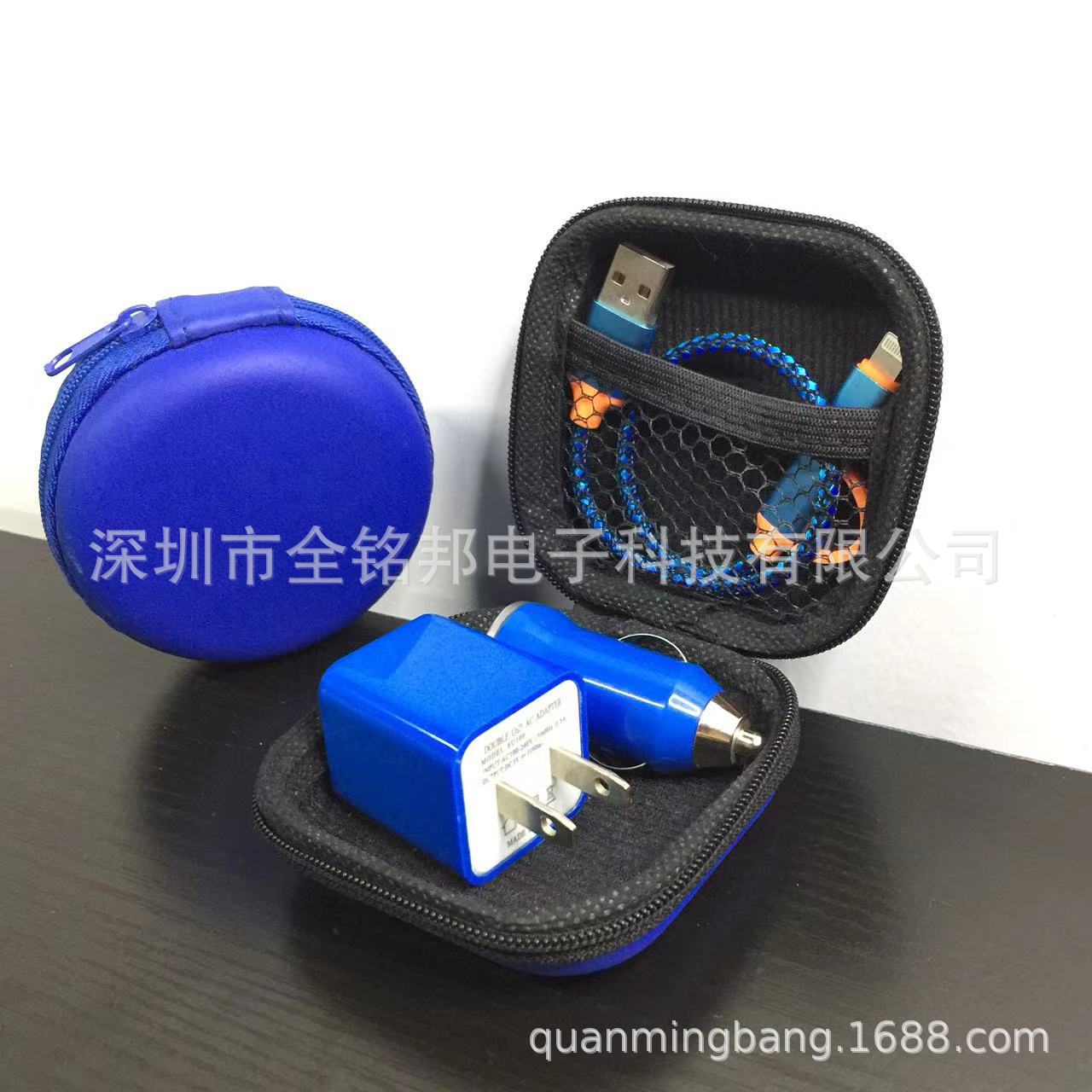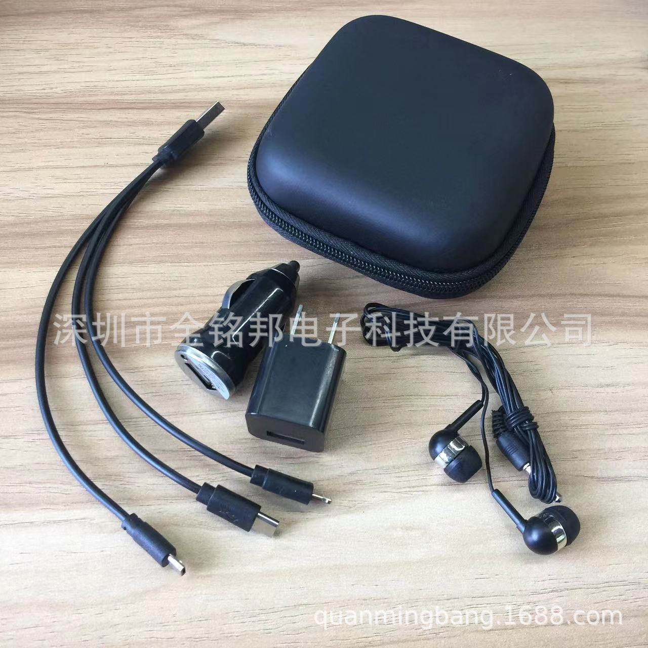 迷你车载手机充电器商务旅行充电器套装车充墙插耳机三合一三件套